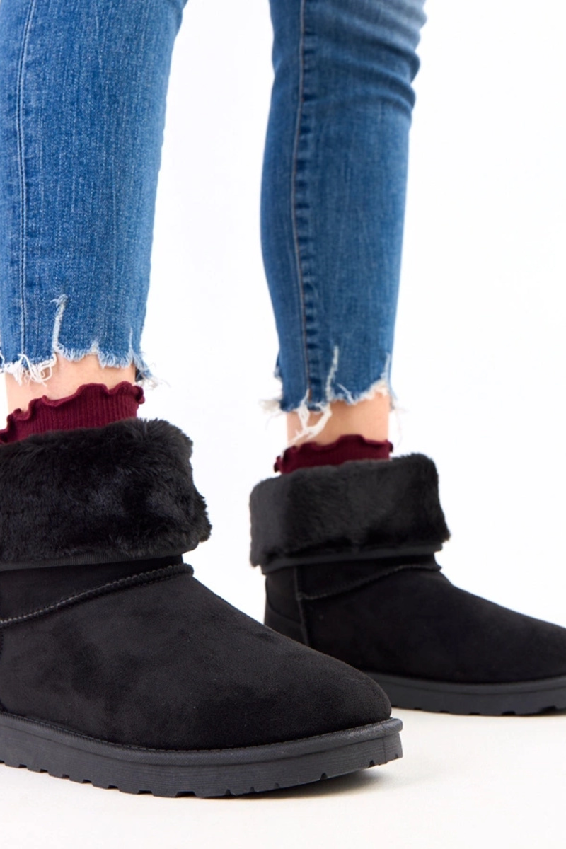 Melni sniega zābaki ar kažokādu uz platformas Meggi