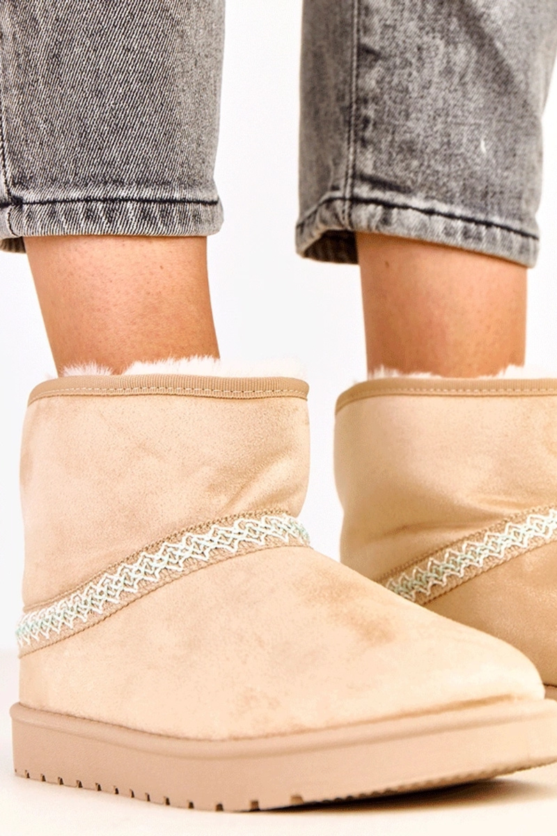 Smilšu krāsas zemas sniega zābaciņas no mākslīgā zamša, Karolla