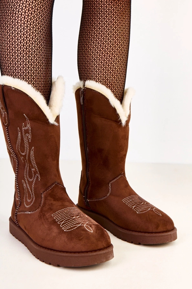 Darena brūni sniega zābaki ar izšuvumu uz kājas