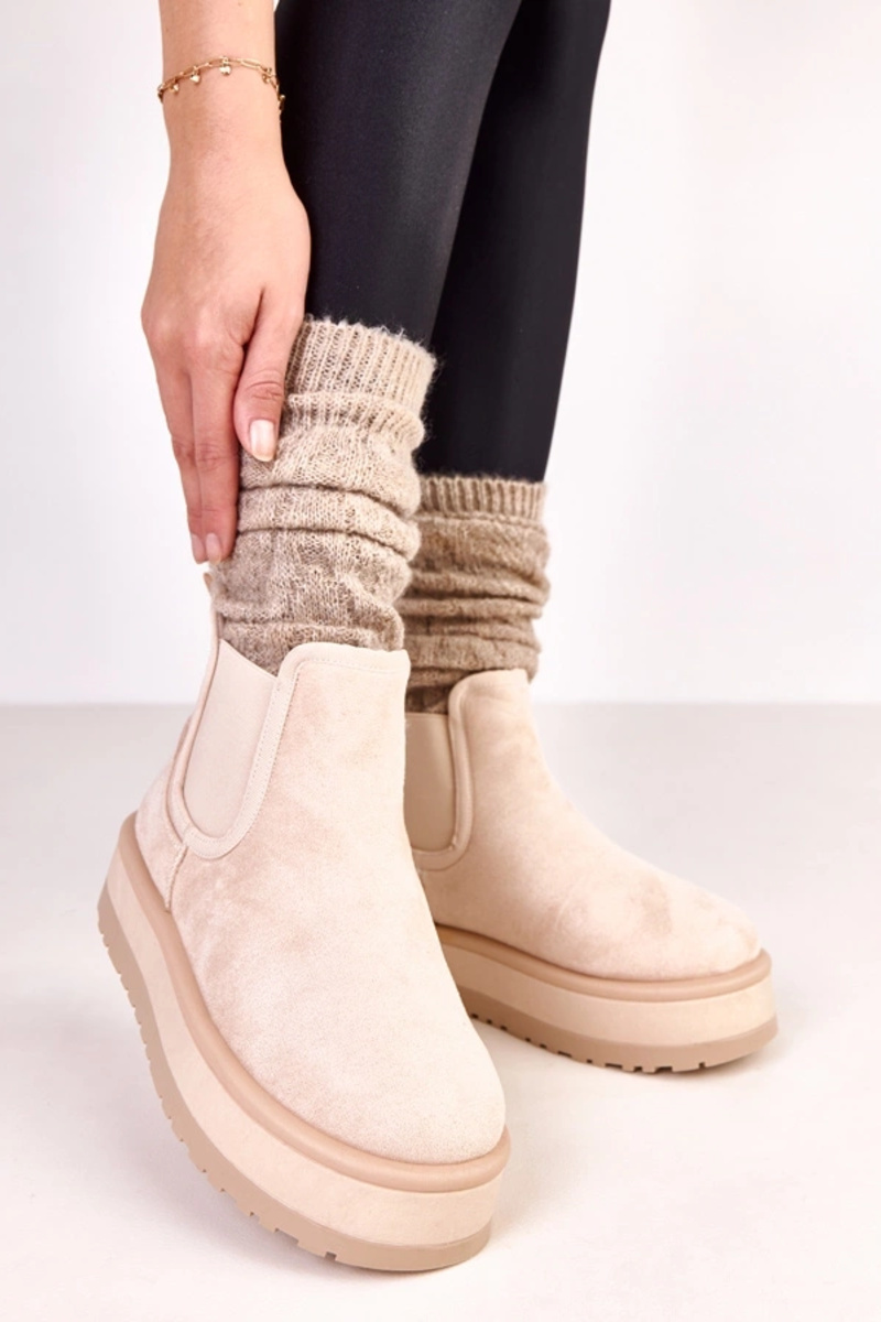 Smilšu krāsas sniegoti zābaki ar elastīgu iešuvumu