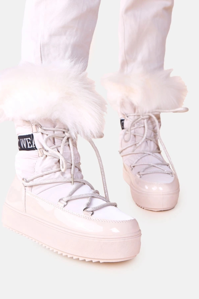 Smilšu krāsas sniega zābaki ar auklēm un kažokādu Alison
