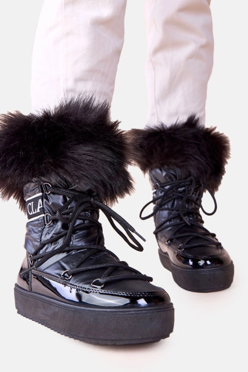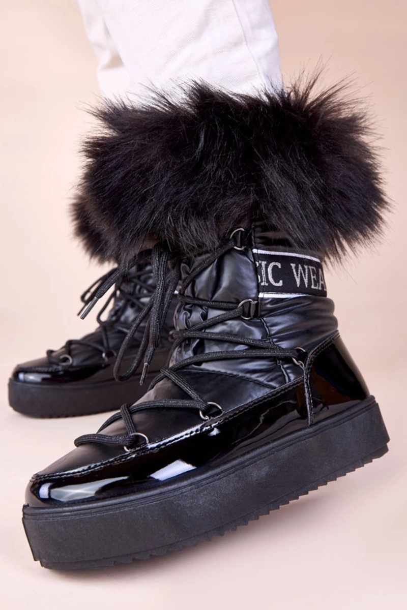 Melni aukstiem zābakiem ar mežģīnēm un kažokā Alison