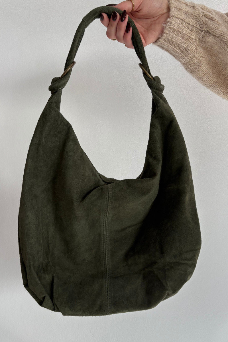 Dabas zamšs soma tumši zaļā krāsā Floriah