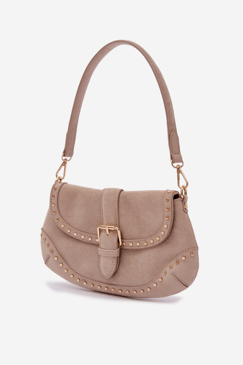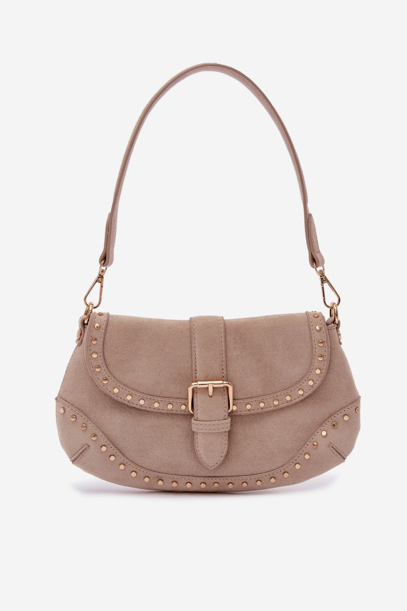 Soma ar kniedēm no mākslīgā zamšā tumši smilšu krāsā Clarielle