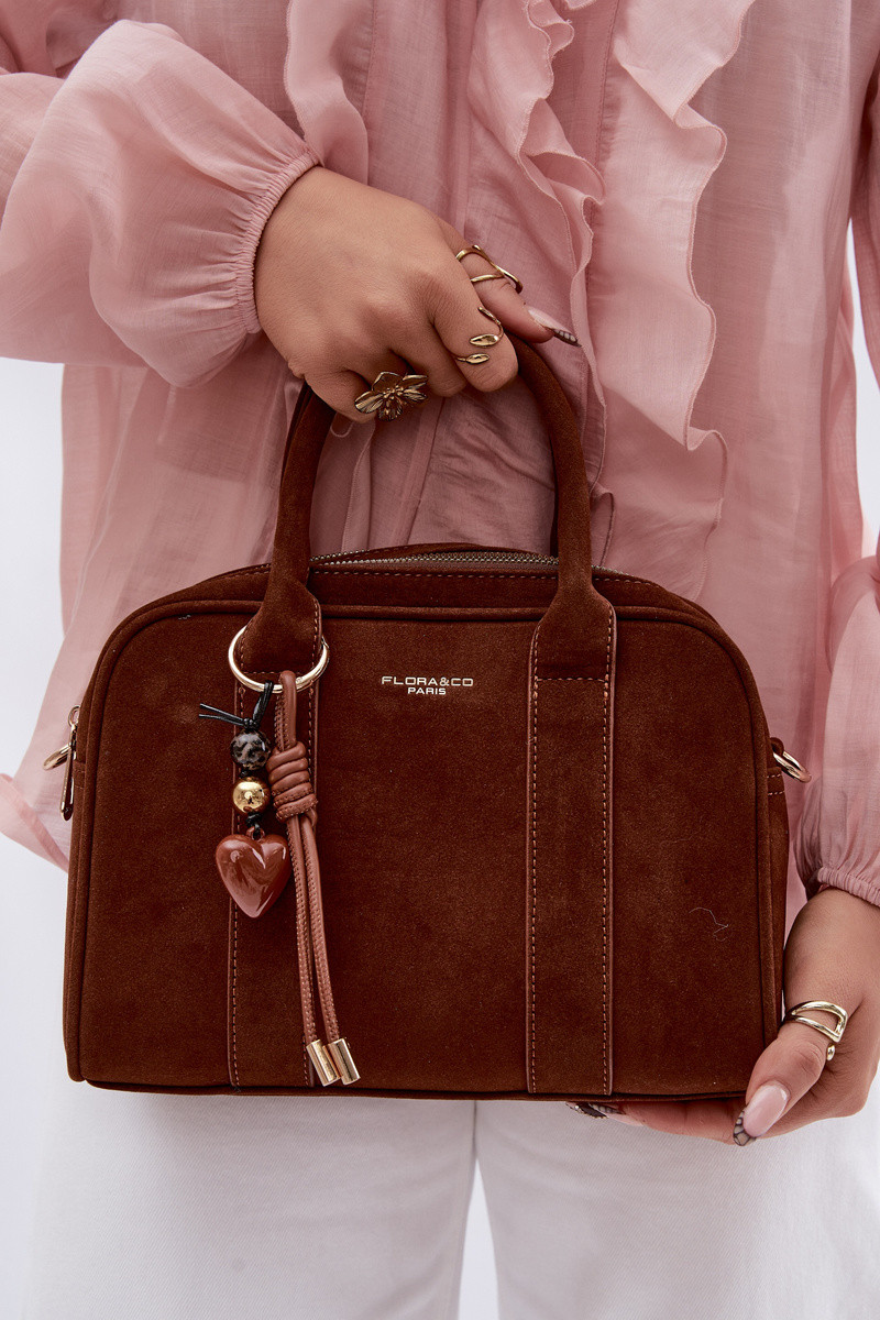 Ceļojumu soma no mākslīgā zamšā ar piekariņiem šokolādes krāsā Sorielle