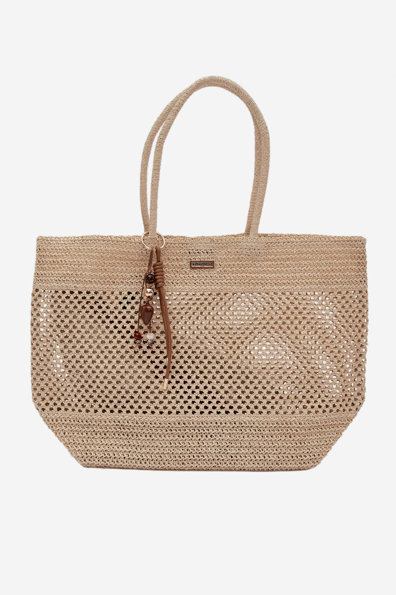 Lucette pītā iepirkumu soma liela ar piekariņu gaiši smilšu krāsā
