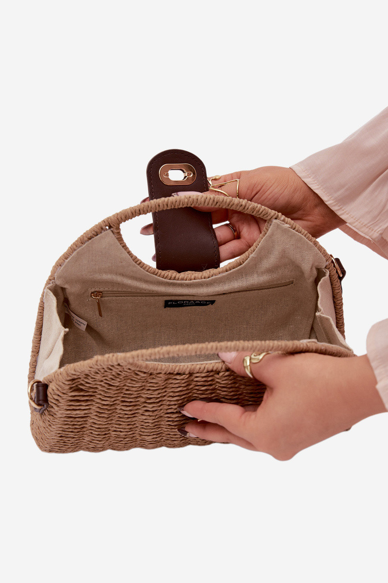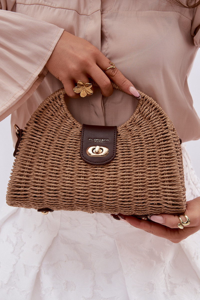 Pinta neliela soma ar dekoratīvām lentēm brūnā krāsā Delphine