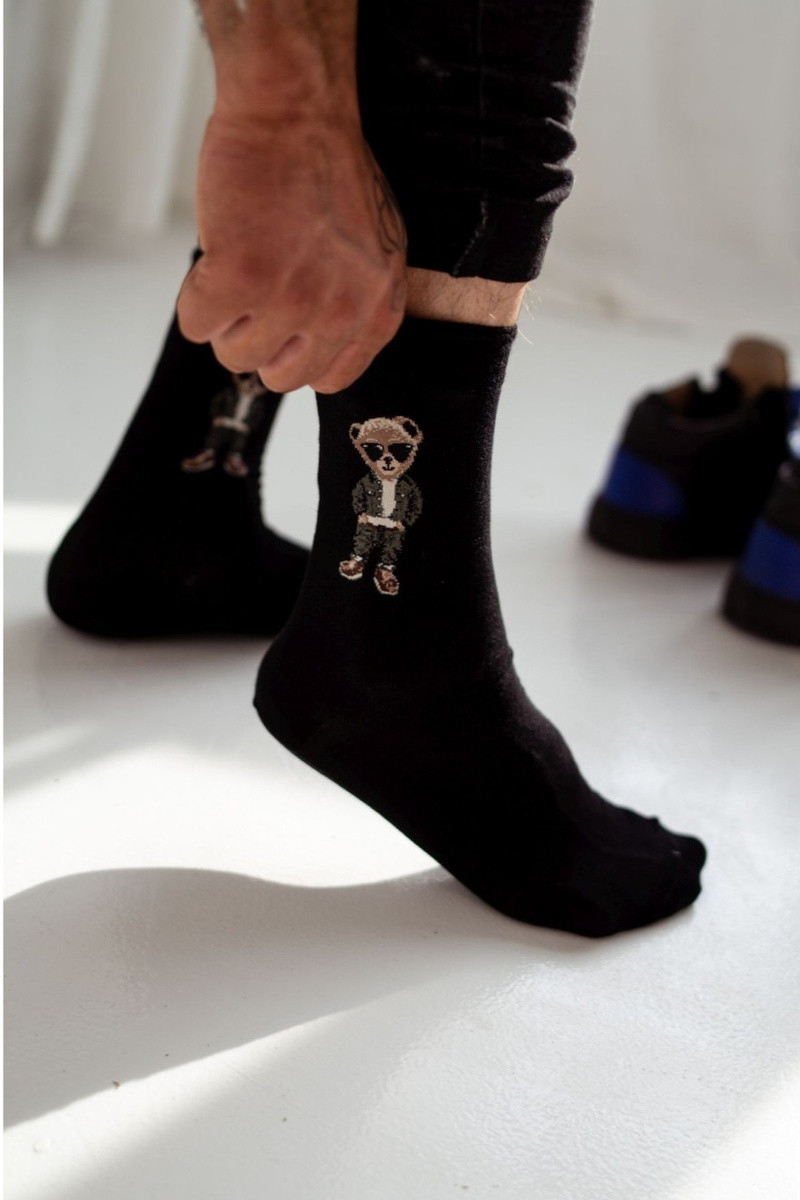 Vīriešu zeķes ar lāča brillēm melnā krāsā