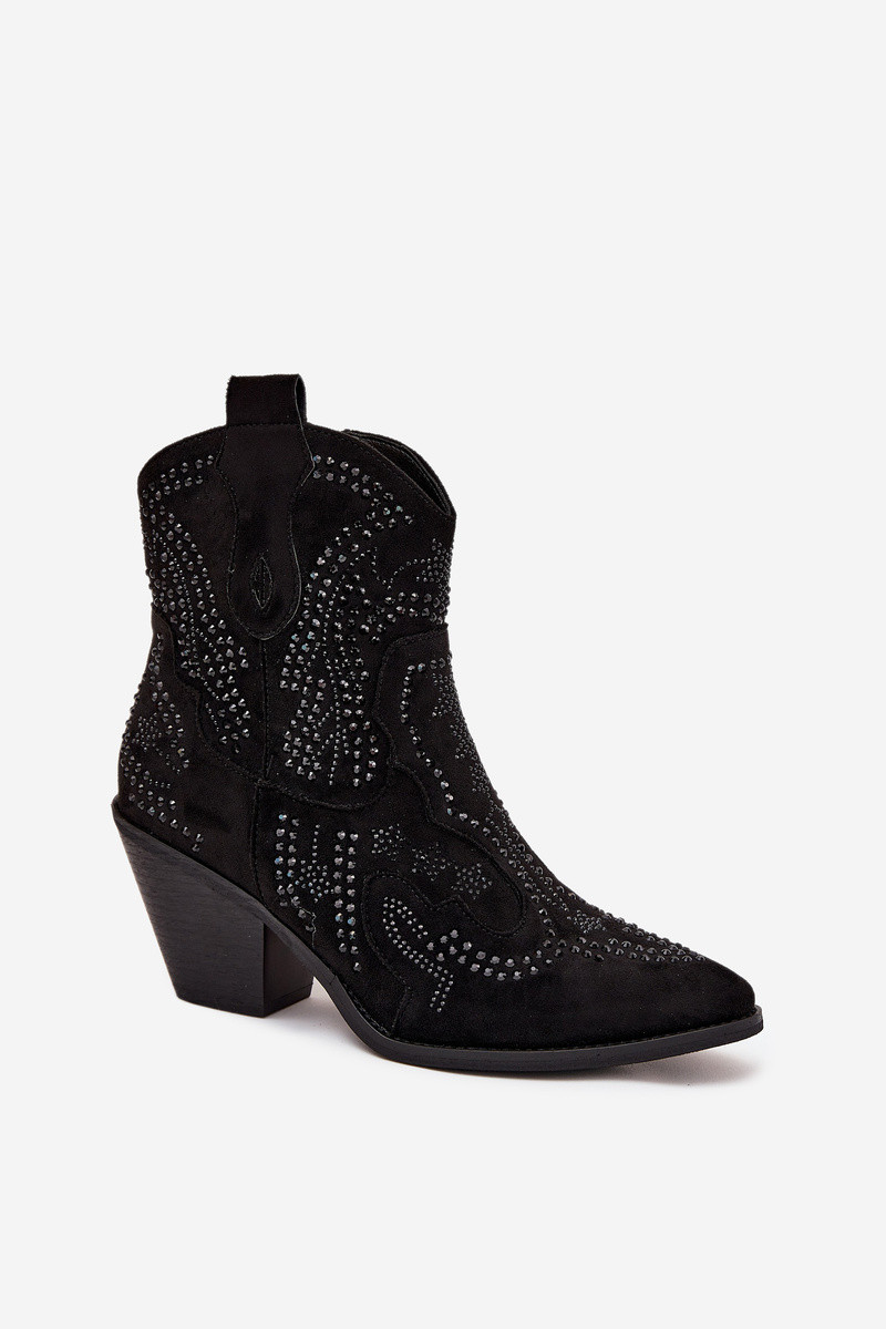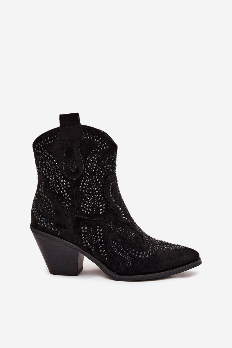 Siltināti sieviešu kovboju stila zābaki ar dekorāciju, melnā krāsā Lelira