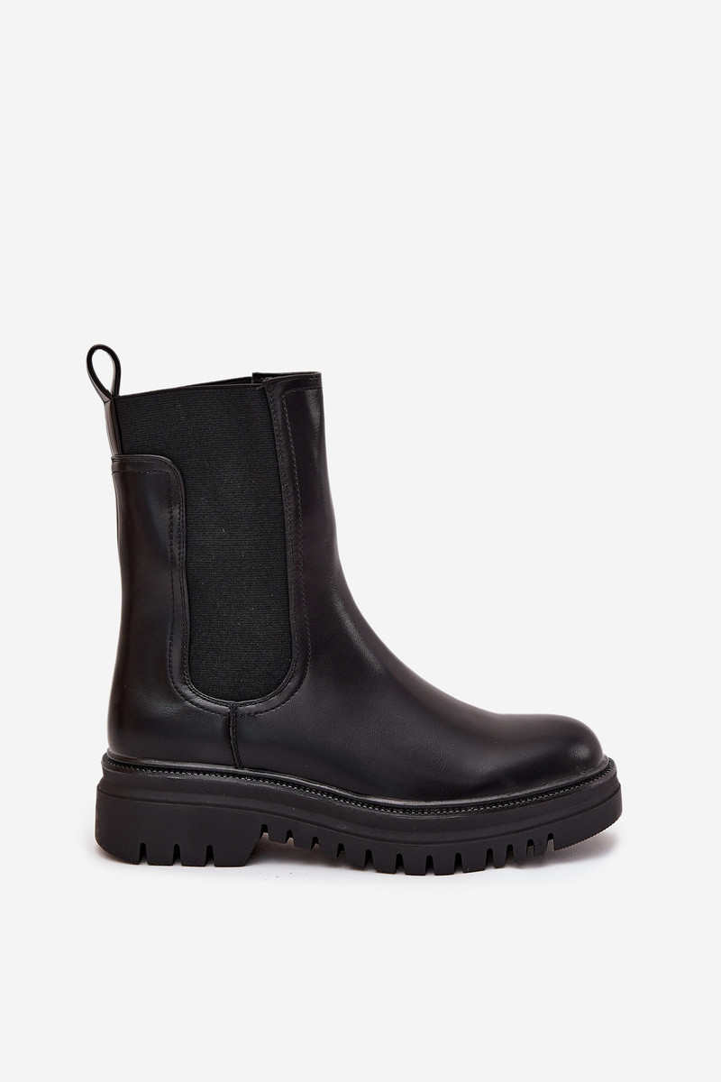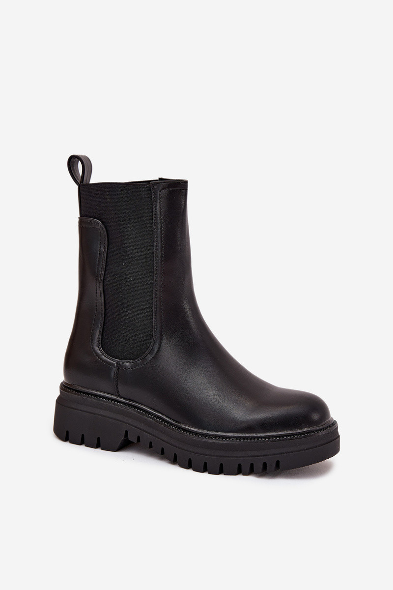Stilīgi sieviešu zābaki ar platformu un plakanajiem papēžiem, ievelkamā modeļa, melnā krāsā Ravessa