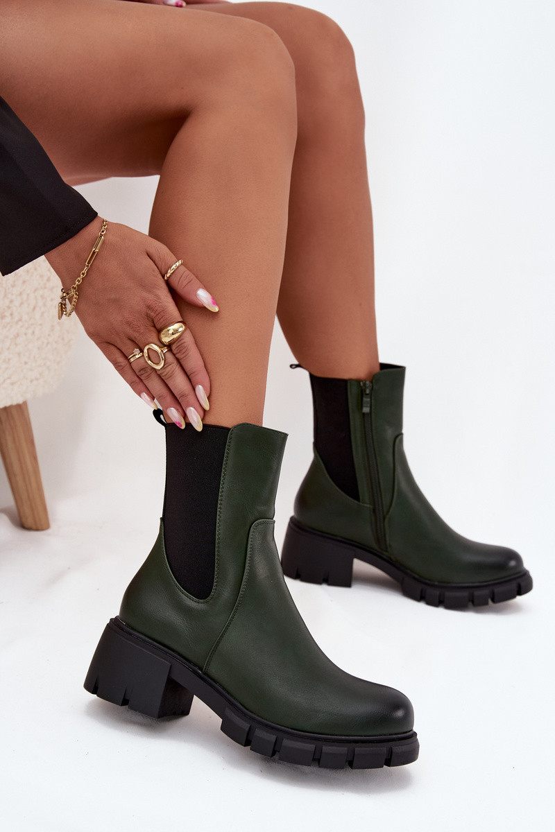 Sieviešu zābaciņi no mākslīgās ādas, haki krāsā Kyra