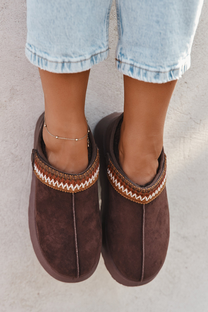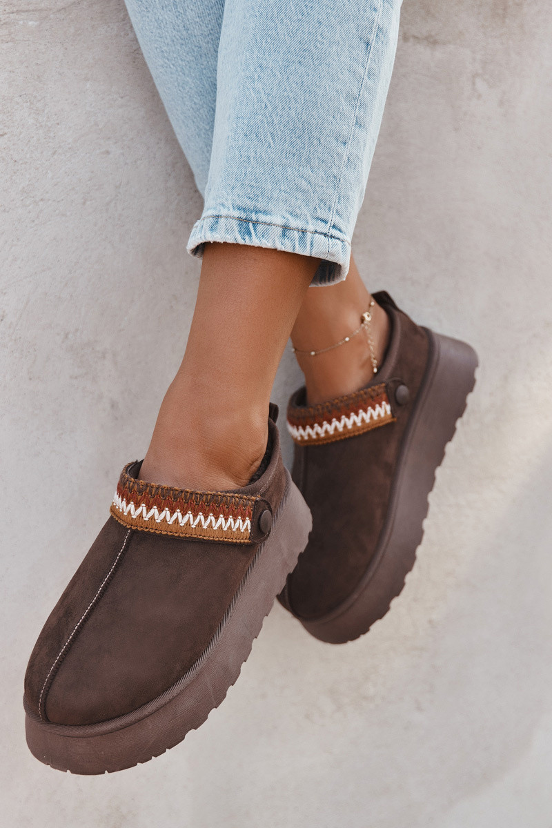 Sniega zābaki sievietēm zemi ar kustīgiem siksniņām un izšuvumu, ar platformu šokolādes krāsā Lyrisse