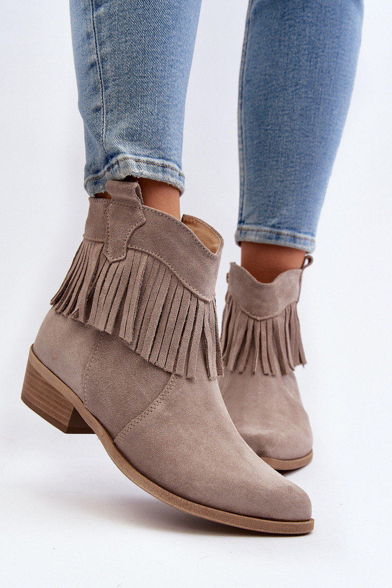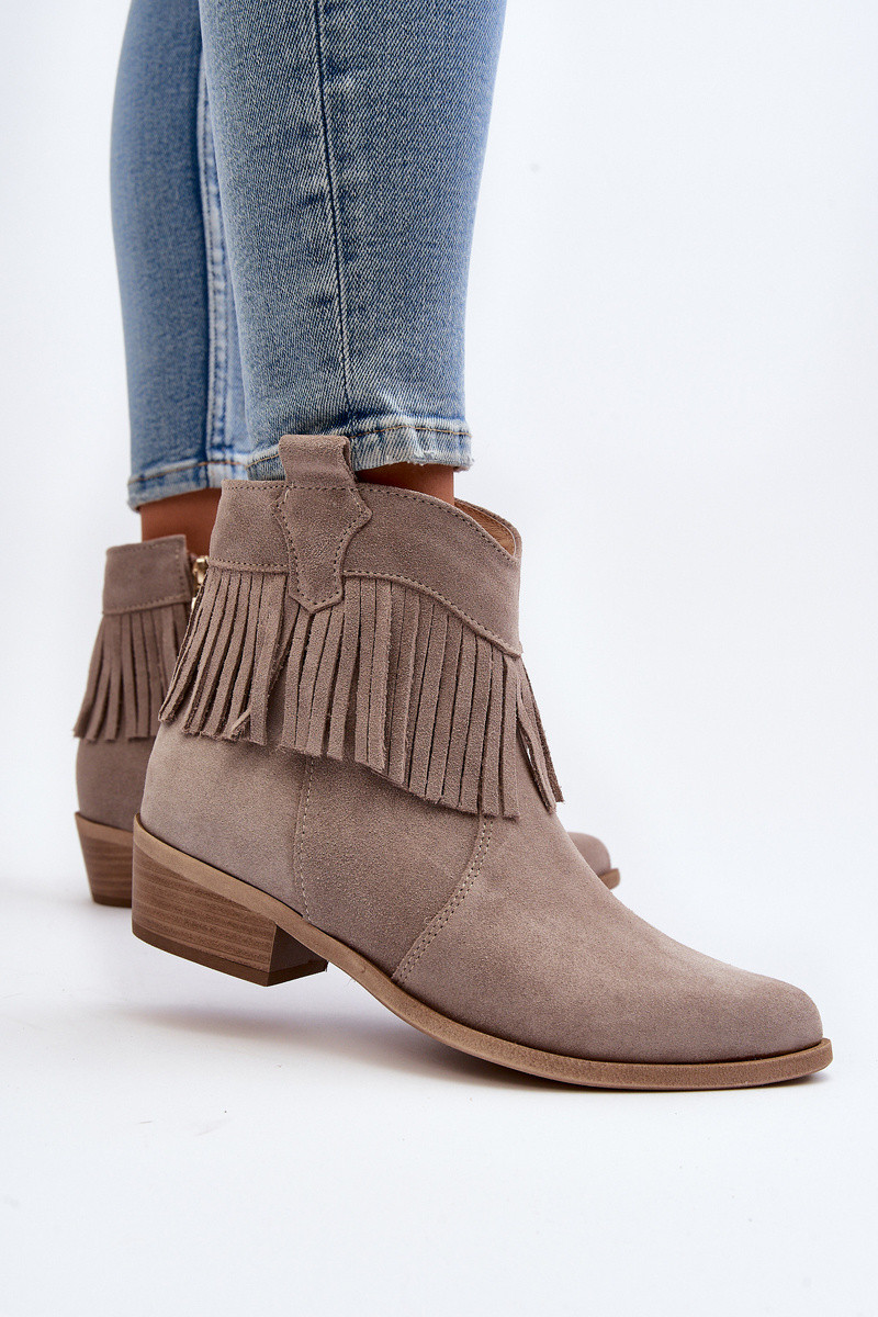 Kapučīno krāsas zamša zābaki sievietēm ar kutiem „Zazoo 3430"