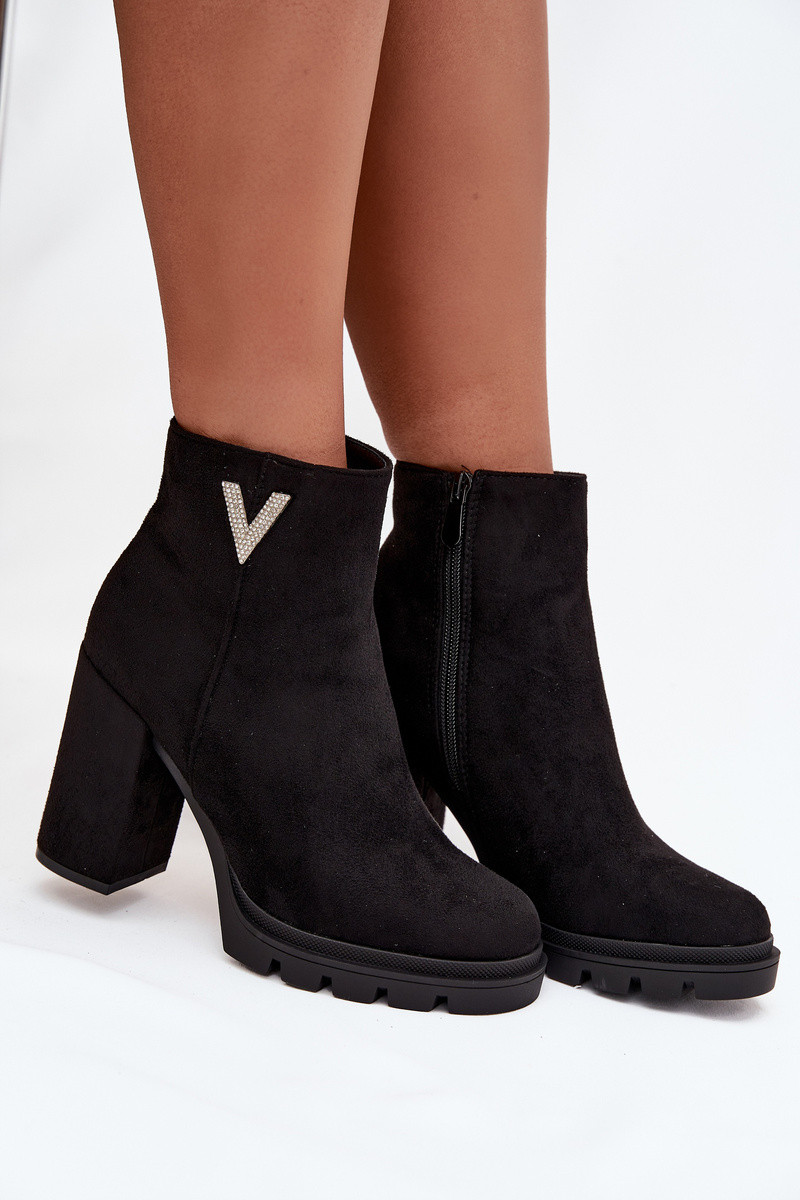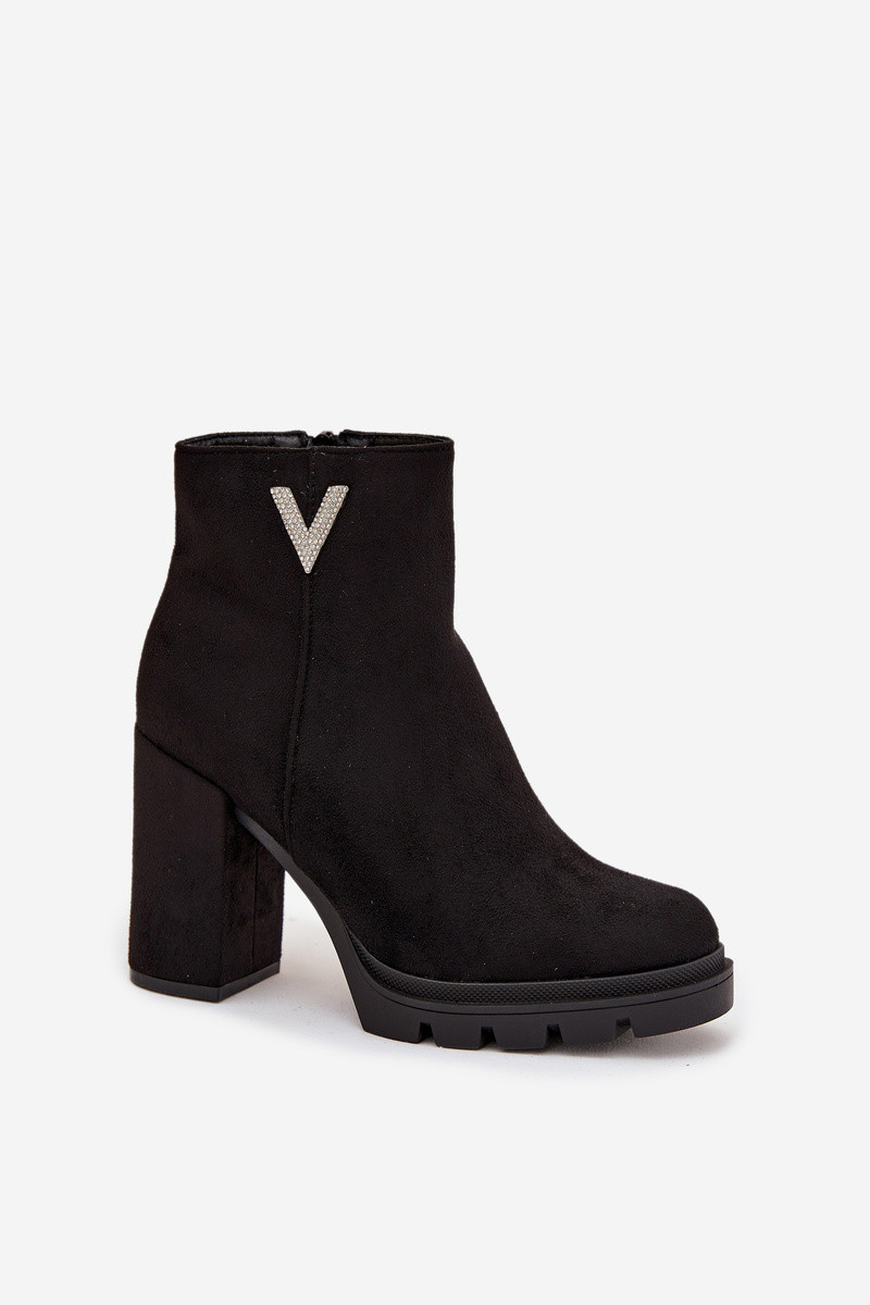 Sieviešu puszābaki siltināti ar papēdi Ar greznu Detalem melnas krāsas Briella