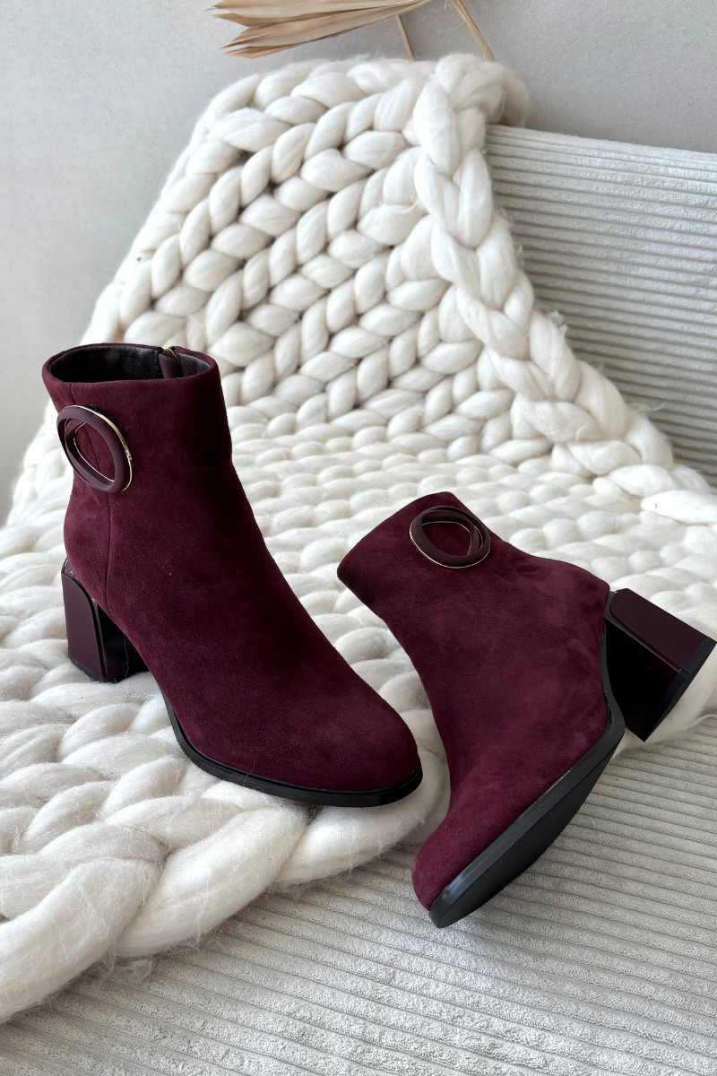 Zamšādas siltie zābaki uz papēžiem ar greznām detaļām Artiker 57C0016 bordo krāsā