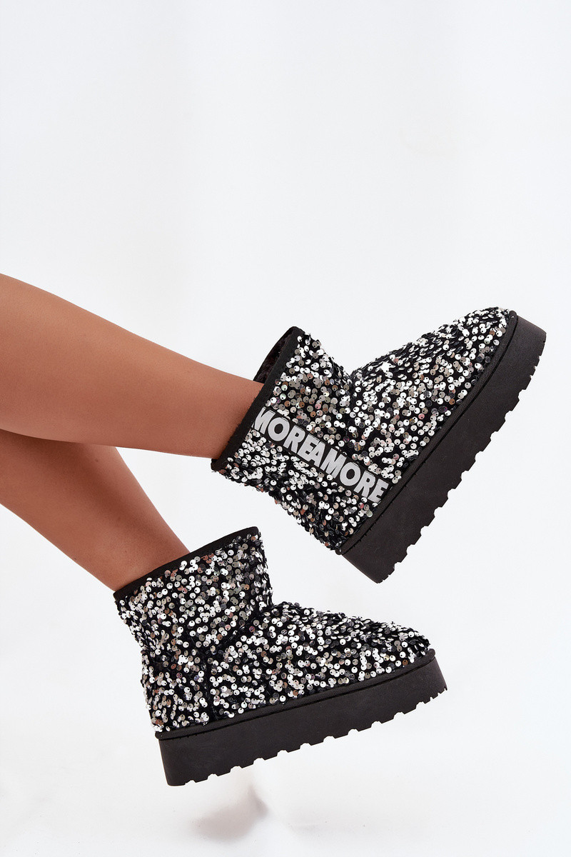 sniega apavi Sieviešu ar platformu Dekorēts ar fliteriem Melns-Sudraba krāsas Silmo