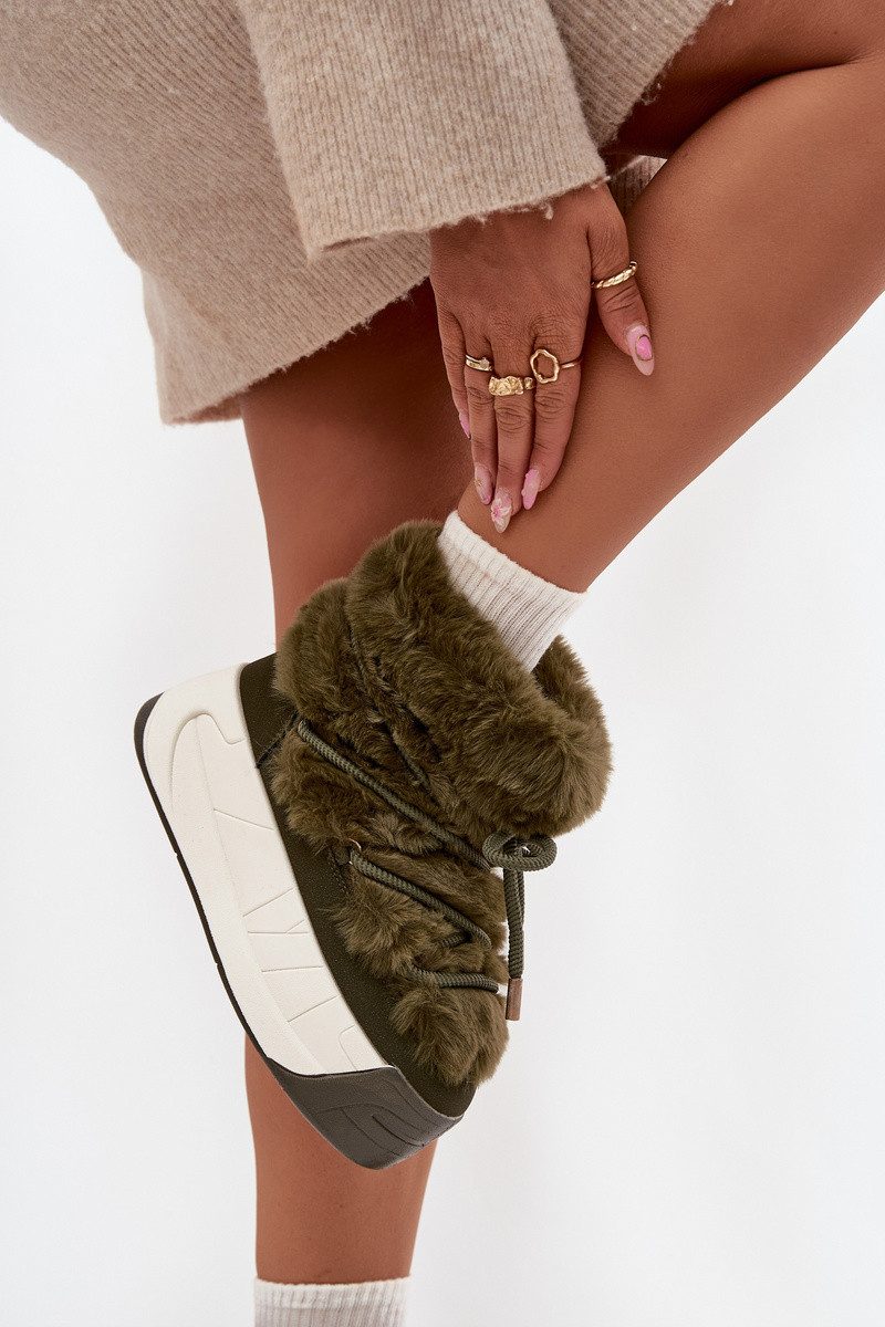 sniega apavi Sieviešu ar platformu ar stilīgām detaļām Un Kažokādas haki krāsas Kalivira