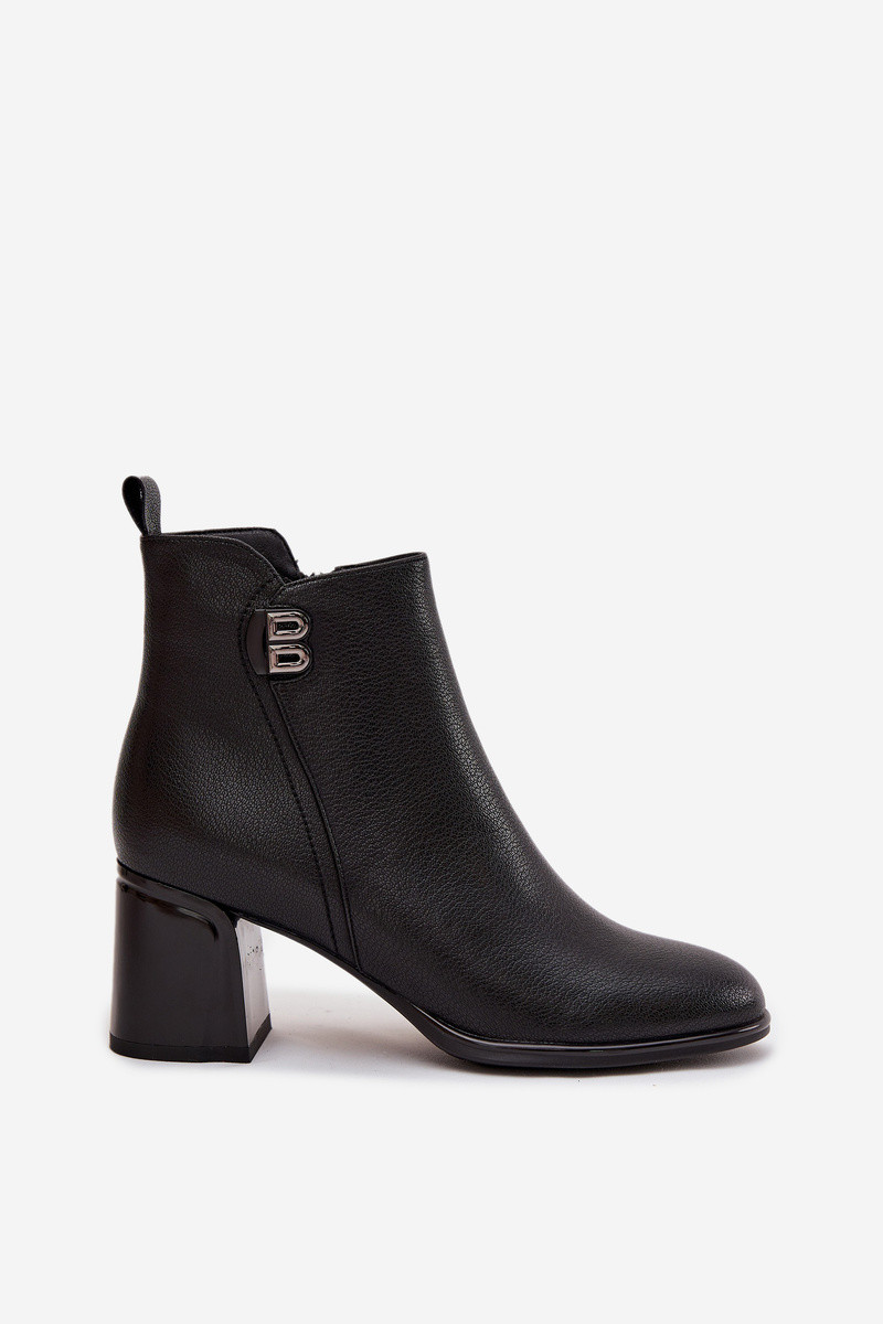 Siltināti sieviešu dabīgās ādas zābaciņi ar papēžiem melnā krāsā Jovelle