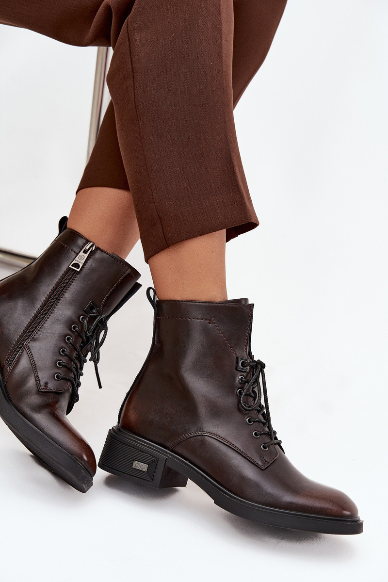 Sieviešu dabīgas ādas zābaki uz zema papēža, siltināti, Vinceza 39955 šokolādes krāsā
