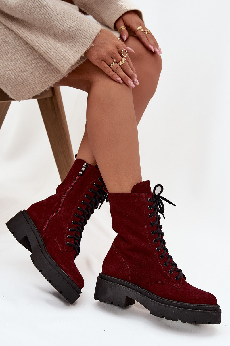 darba sieviešu potīšu apavi no dabīgās zamšādas siltināti Zazoo 4213 bordo krāsā