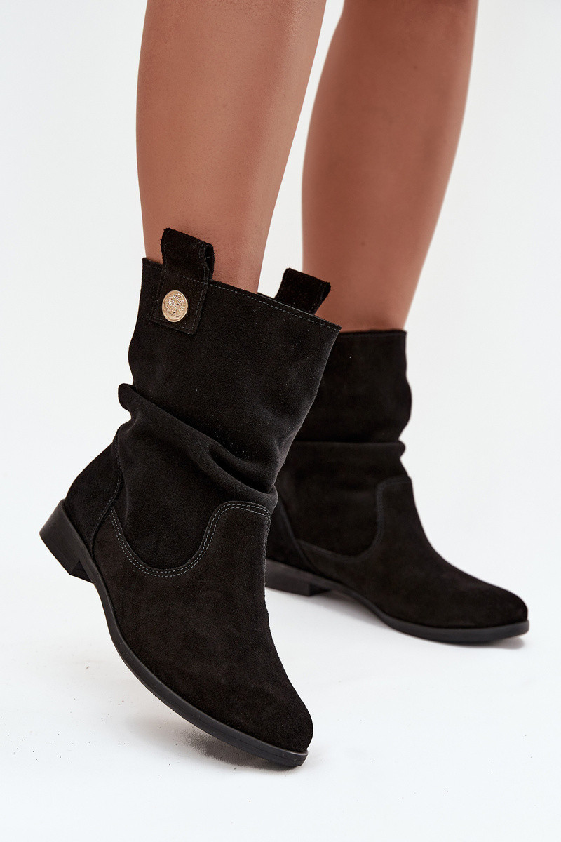 ādas sieviešu zamšādas zābaki ar ruffle siltināti Zazoo 4210 melnā krāsā