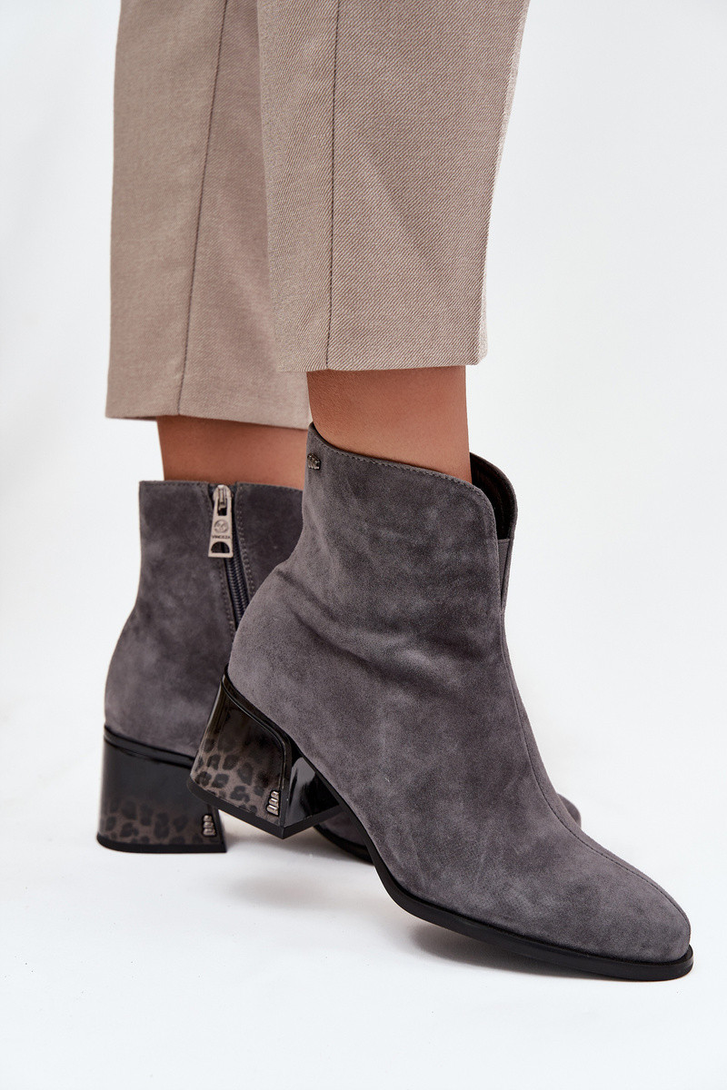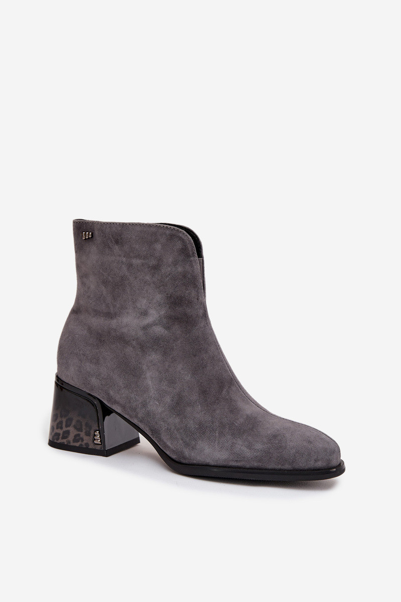 Sieviešu dabīgās zamša zābaki ar papēžiem siltināti Vinceza 66806 pelēkas krāsā