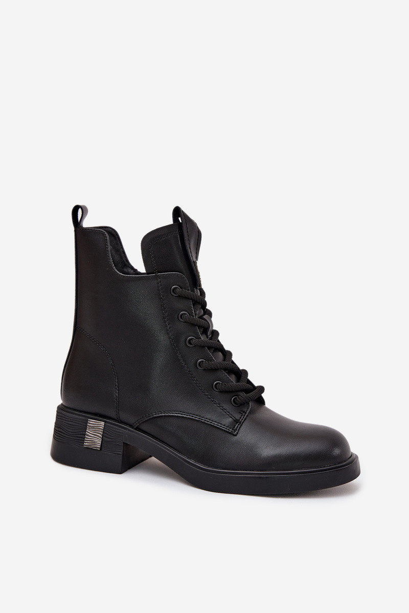 Ādas sieviešu zābaki uz zema papēža Vinceza 66818 melnas krāsā
