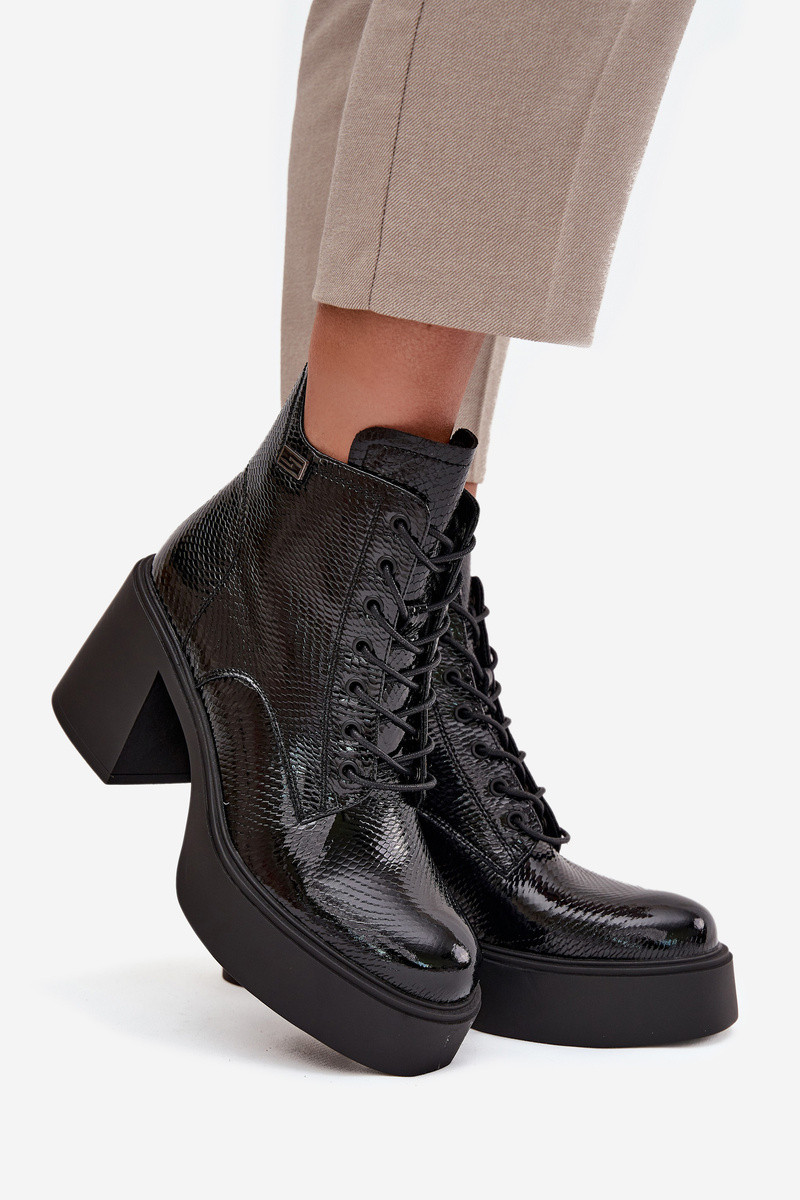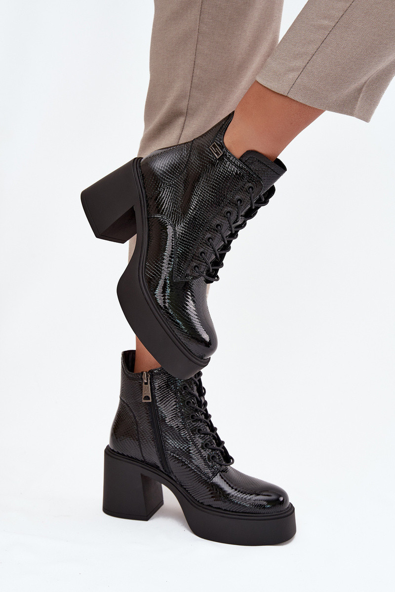 Odas sieviešu zābaki ar platformu Vinceza 66817 ar laku melnā krāsā