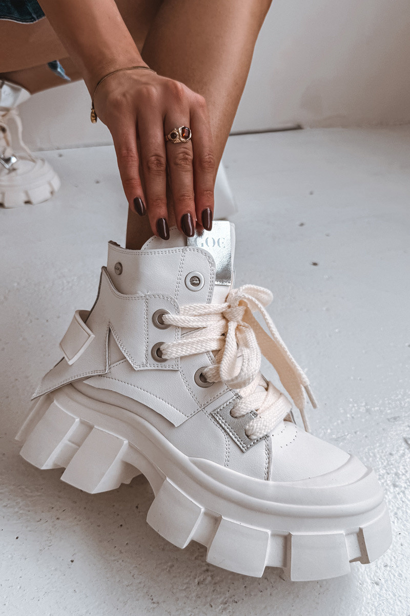 Ādas siltināti sporta stila zābaciņi GOE SS2N4055 baltā krāsā