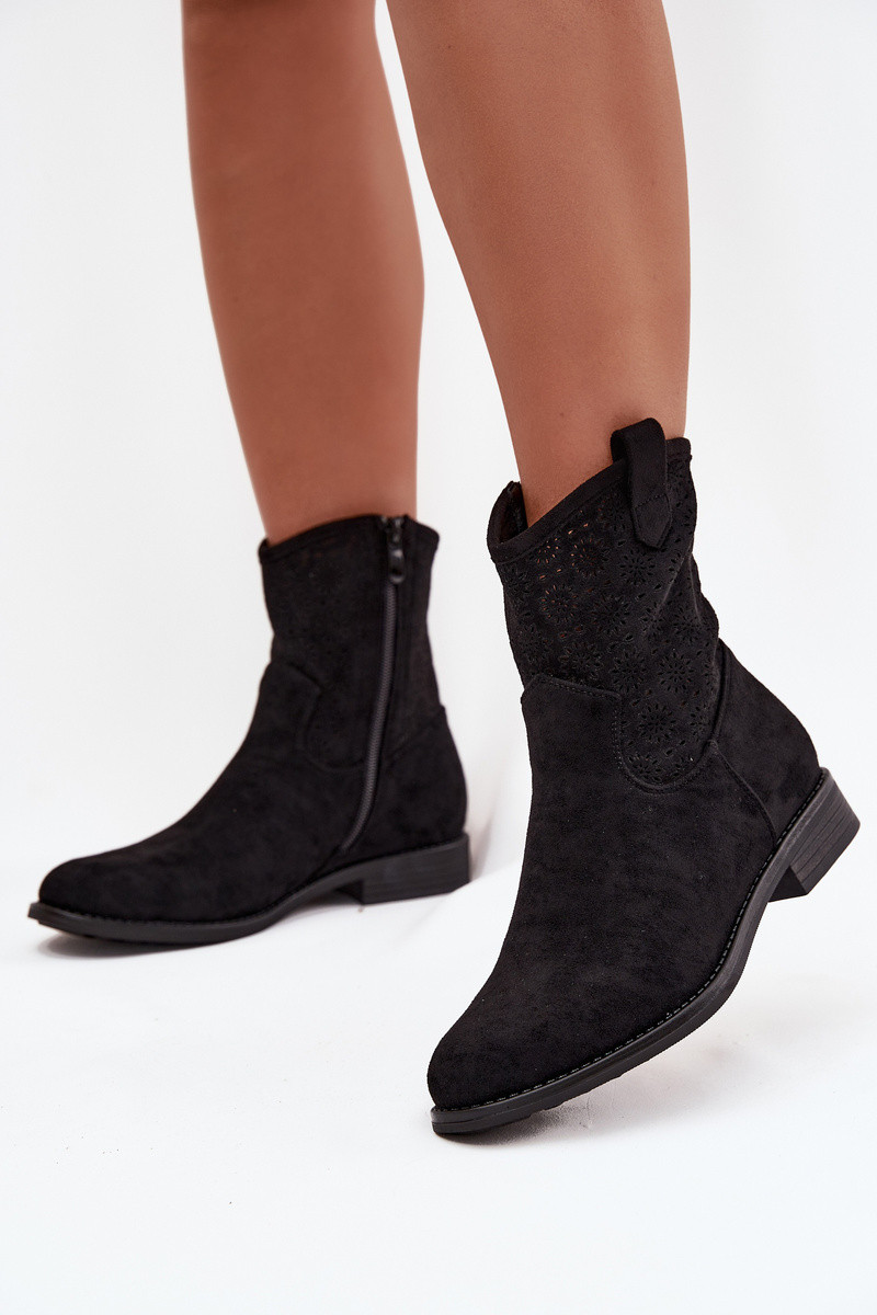Sieviešu puszābaki ar platiem papēžiem Ar ažūra rakstu S.Barski HY52-530 melnas krāsas