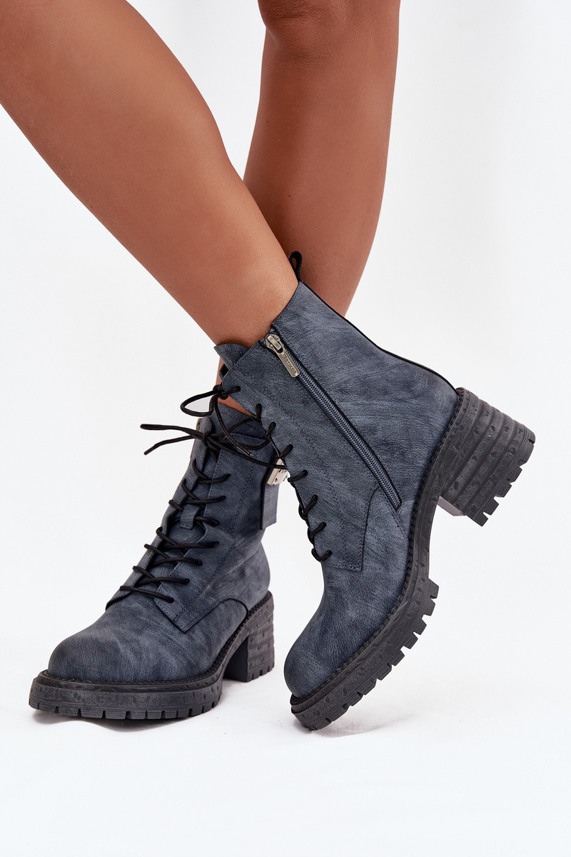 Ādas sieviešu darba zābaciņi ar platformu un greznām detaļām Artiker 57C0212 zilā krāsā