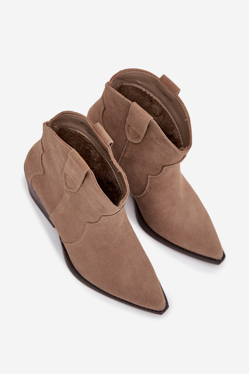 Ievilktie cowboy stila sieviešu zābaciņi no dabīgā zamša Beretta smilšu krāsā