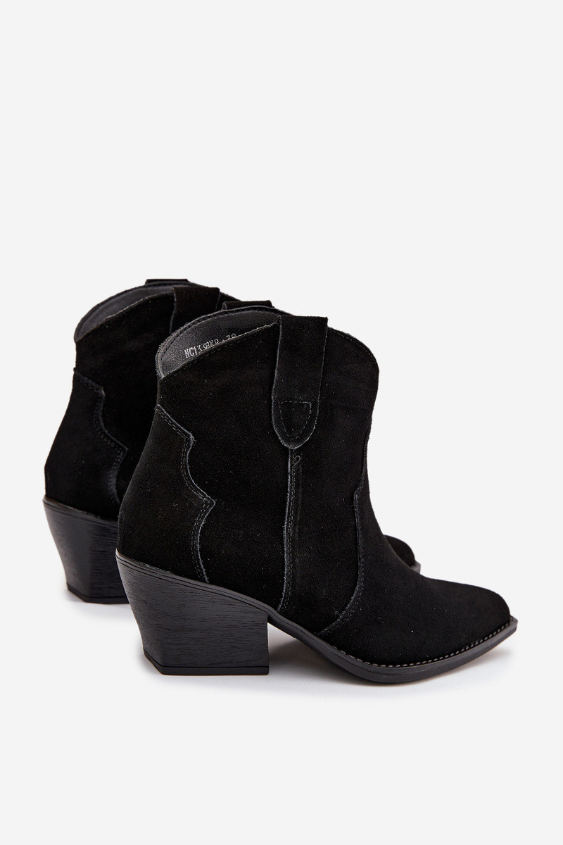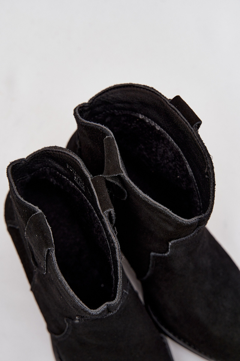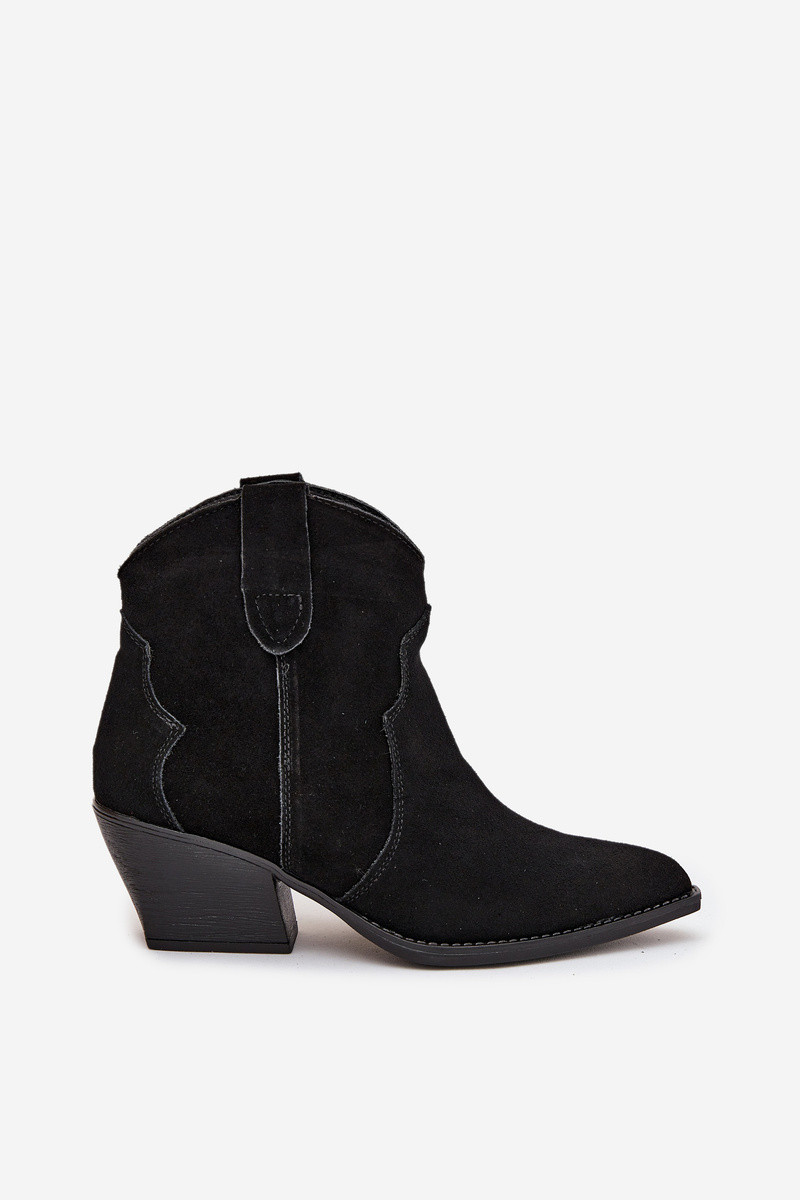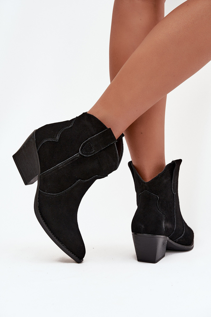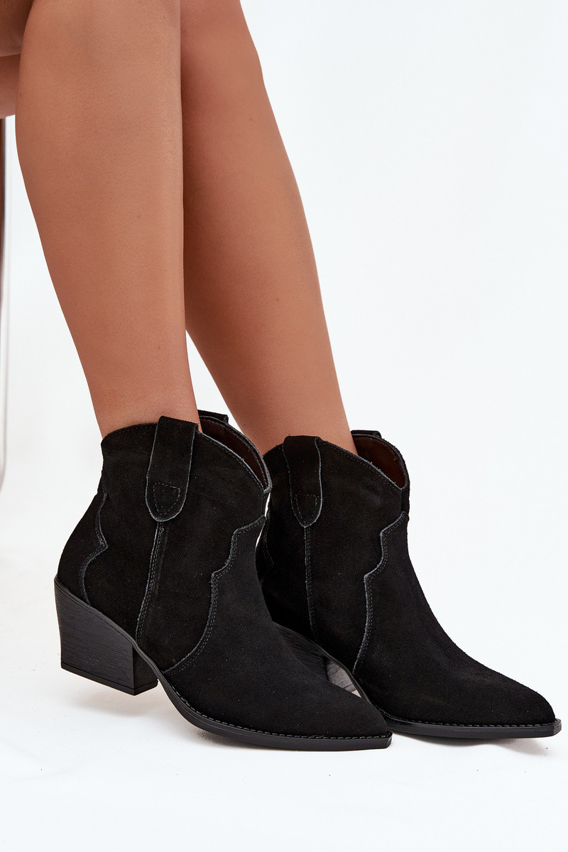 Ievilktie cowboy stila sieviešu zābaciņi no dabīgā zamša Beretta melnā krāsā