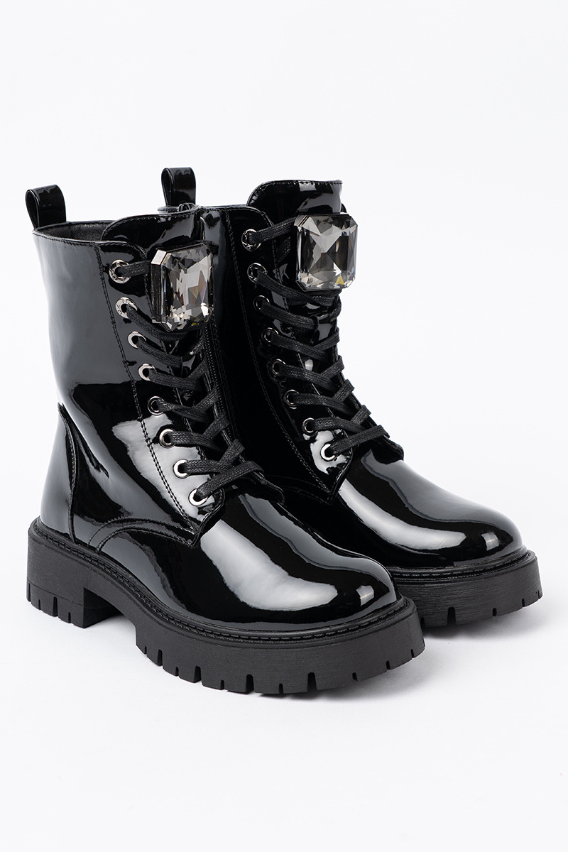 Lakuoti auklas sieviešu zābaki melnā krāsā