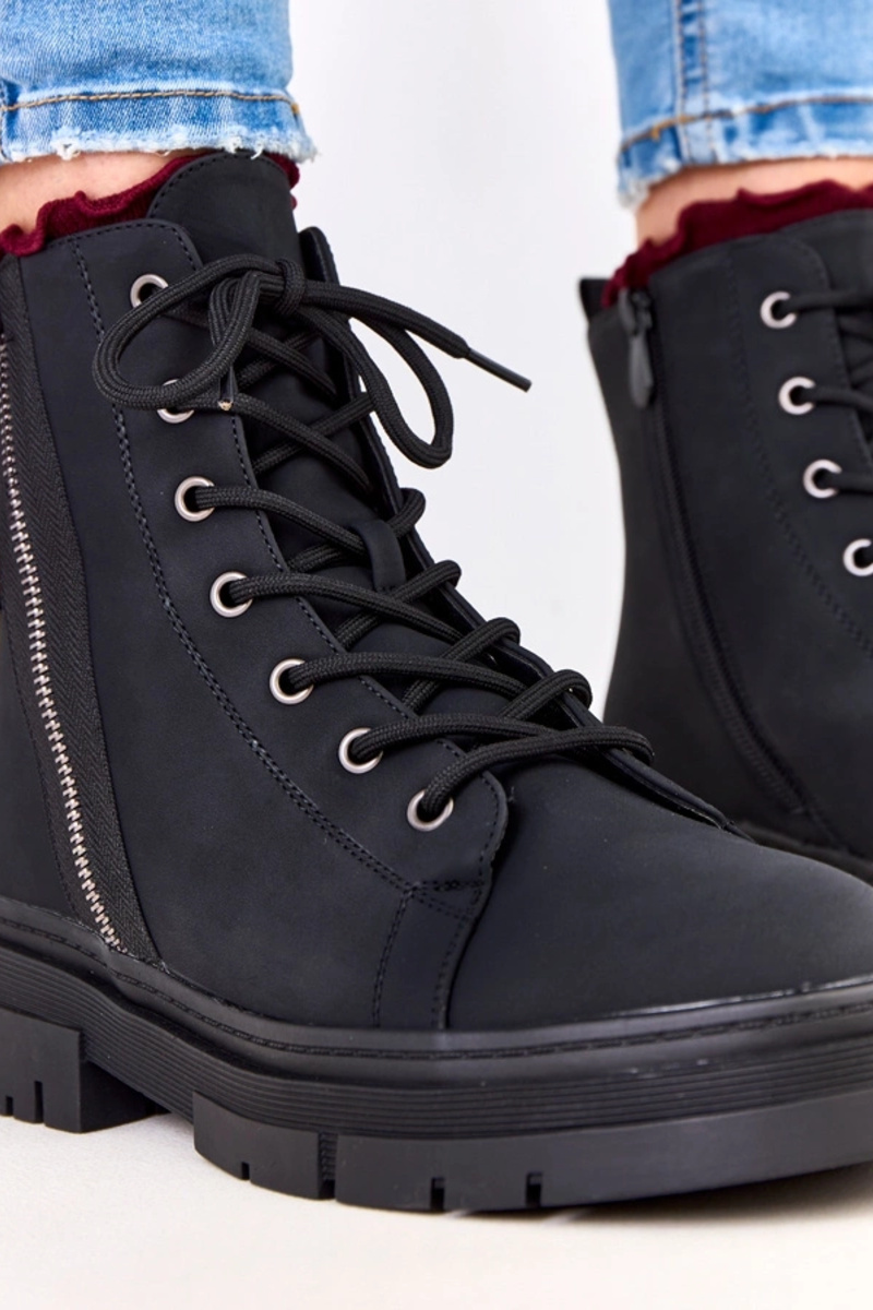 Melni sieviešu darba zābaki no mākslīgās matētās ādas, Jakoma