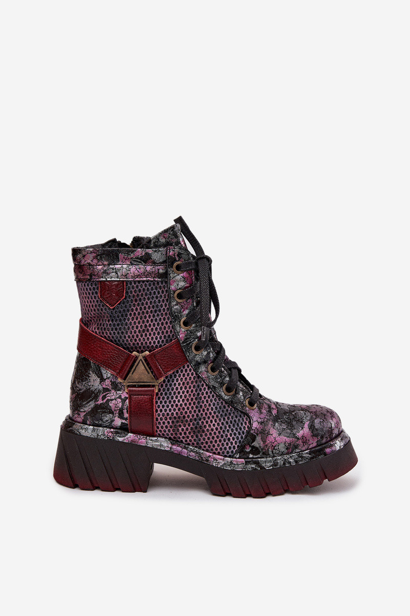 Ādas darba sieviešu potīšu zābaki Tai turiciejka 07072-23 bordo krāsā