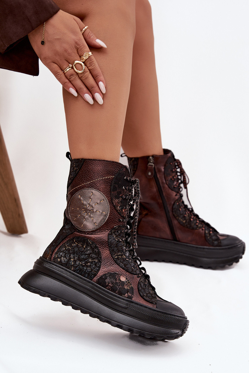 Āda Sieviešu puszābaki ar platformu siltināti Tā irciejka 06565-02 brūnas krāsas-Zelta krāsas