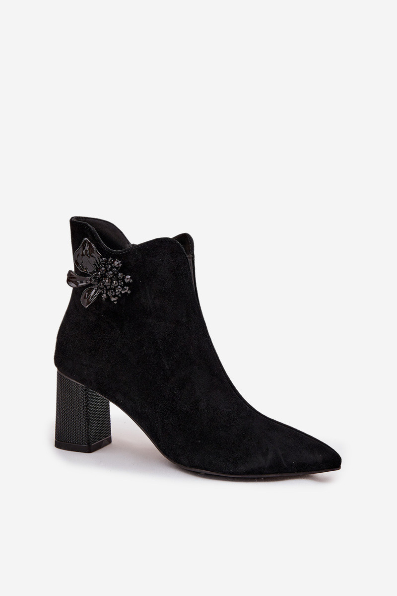 Zamšādas sieviešu zābaki ar ornamentiem D&A CR52-686 melnā krāsā