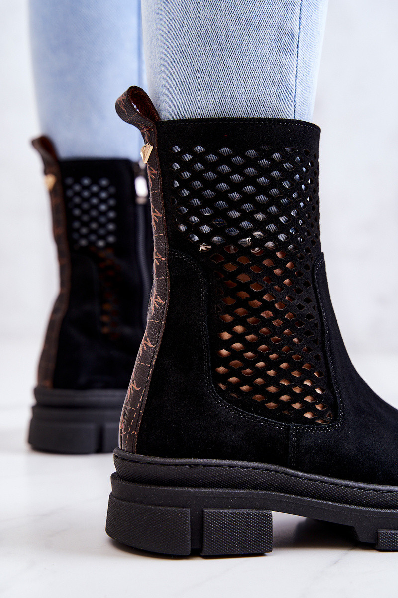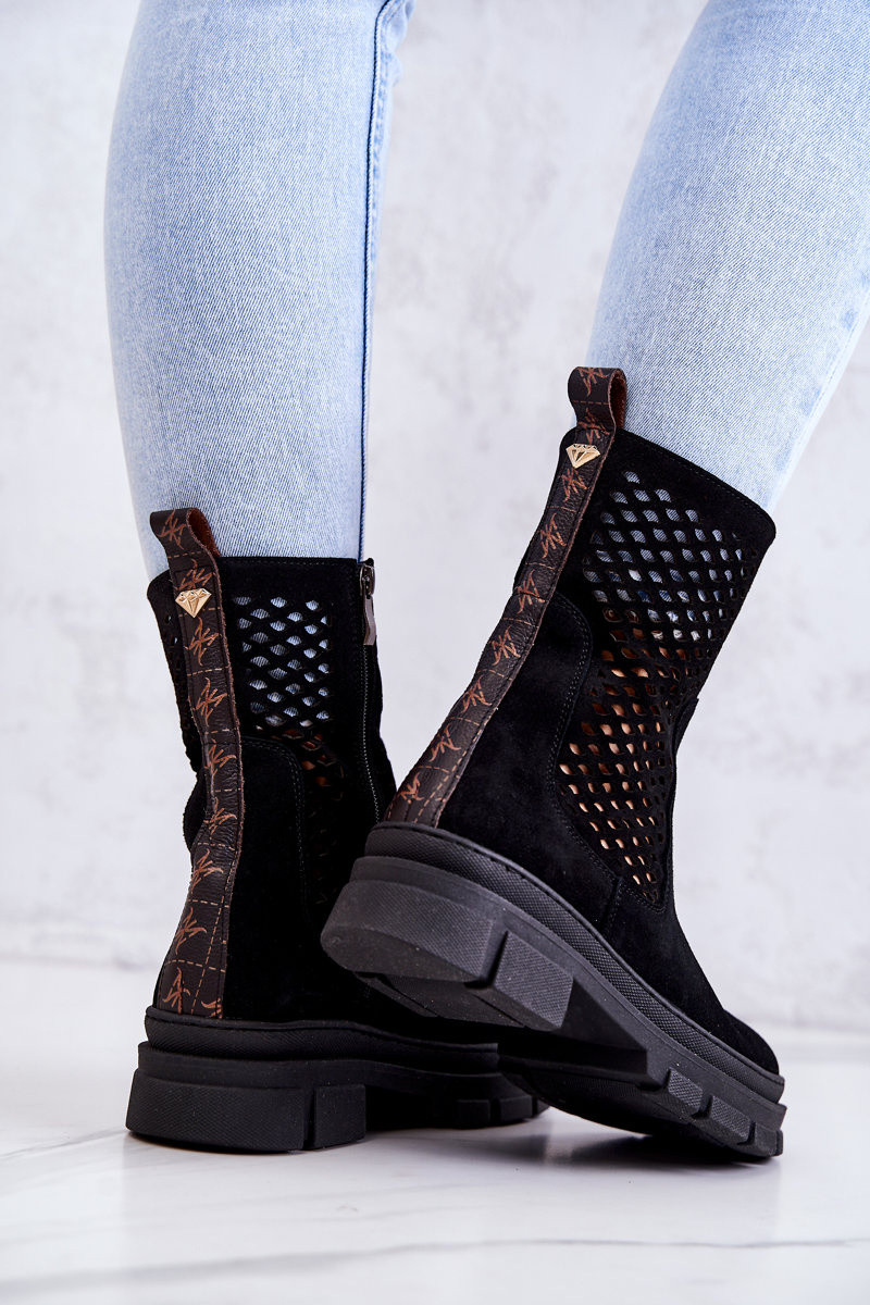Ādas darba potītes botas Nicole melnā krāsā 2711