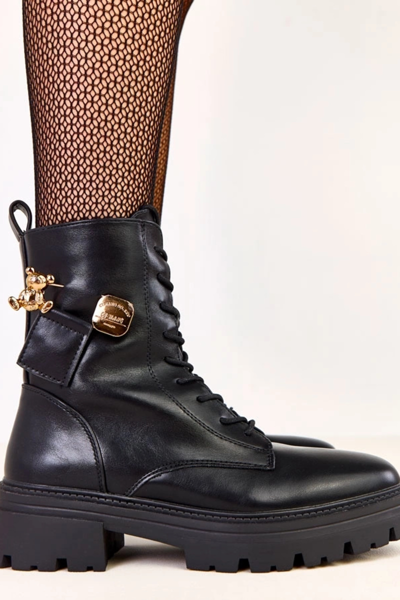 Melnas sieviešu pārgājienu apavi ar zelta lāci Valery