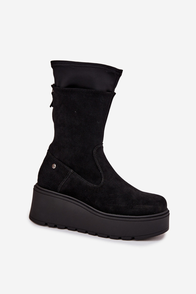 Sieviešu ādas zamša zābaki ar platformu Tai turiciejka A7161-20 melnā krāsā
