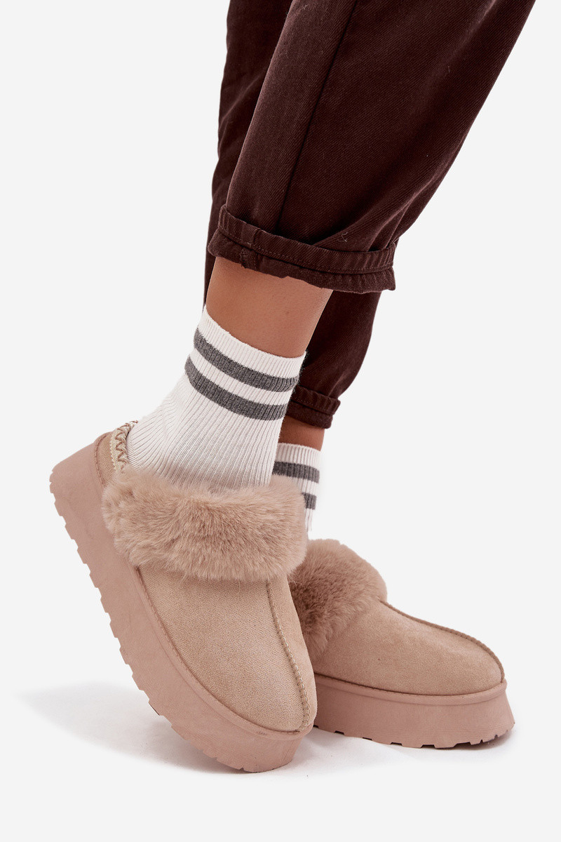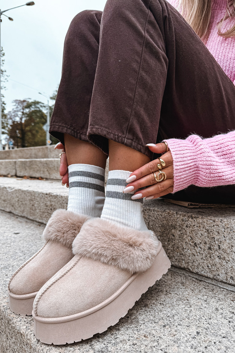 Sieviešu sniega zābaki ar platformu un kažokādu ar izšuvumu smilšu krāsā Querina