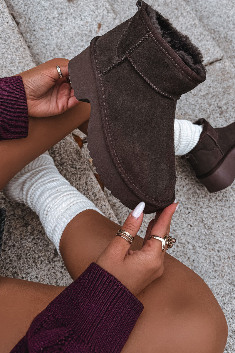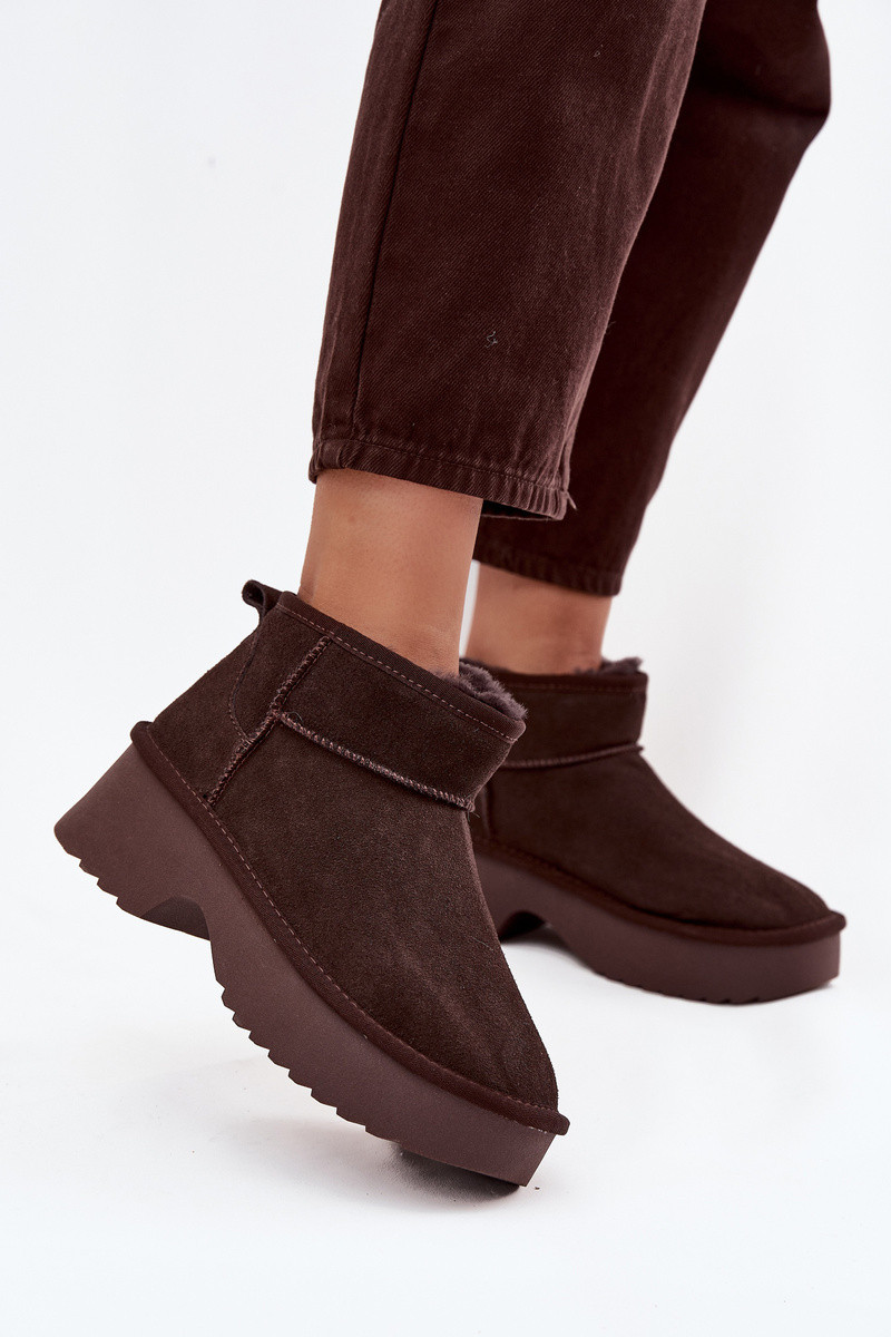 Sieviešu sniega zābaki no dabiskā zamša siltināti ar kažokādu šokolādes krāsā Milora