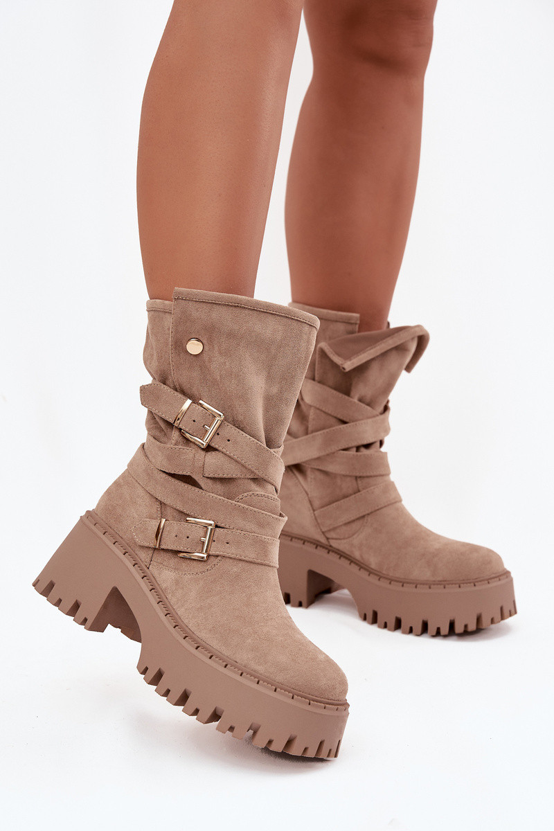 Sieviešu puszābaki Uz masīviem papēžiem ar sprādzēm I Svītrasem smilšu krāsas Nerelisa