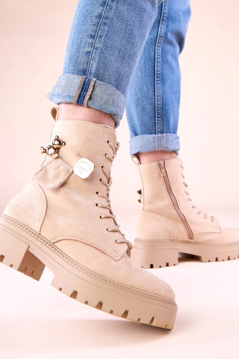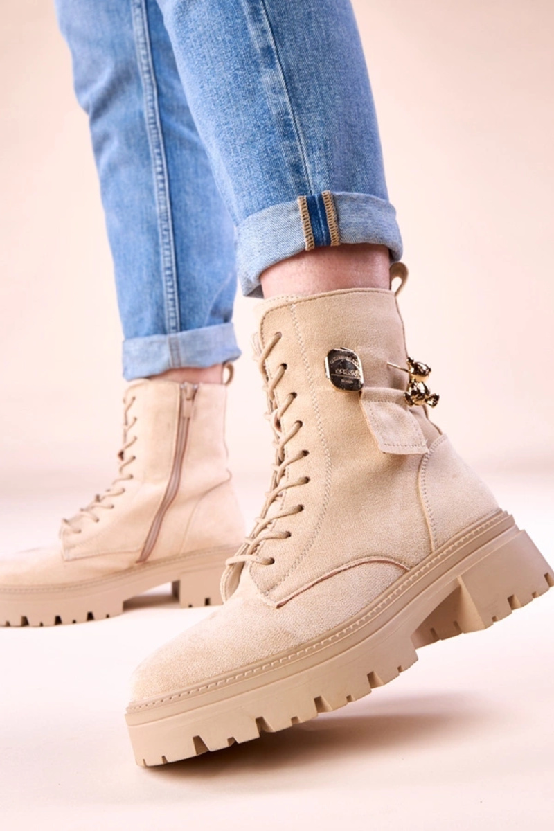 Smilšu krāsas sieviešu zābaki ar zelta lāci Messey