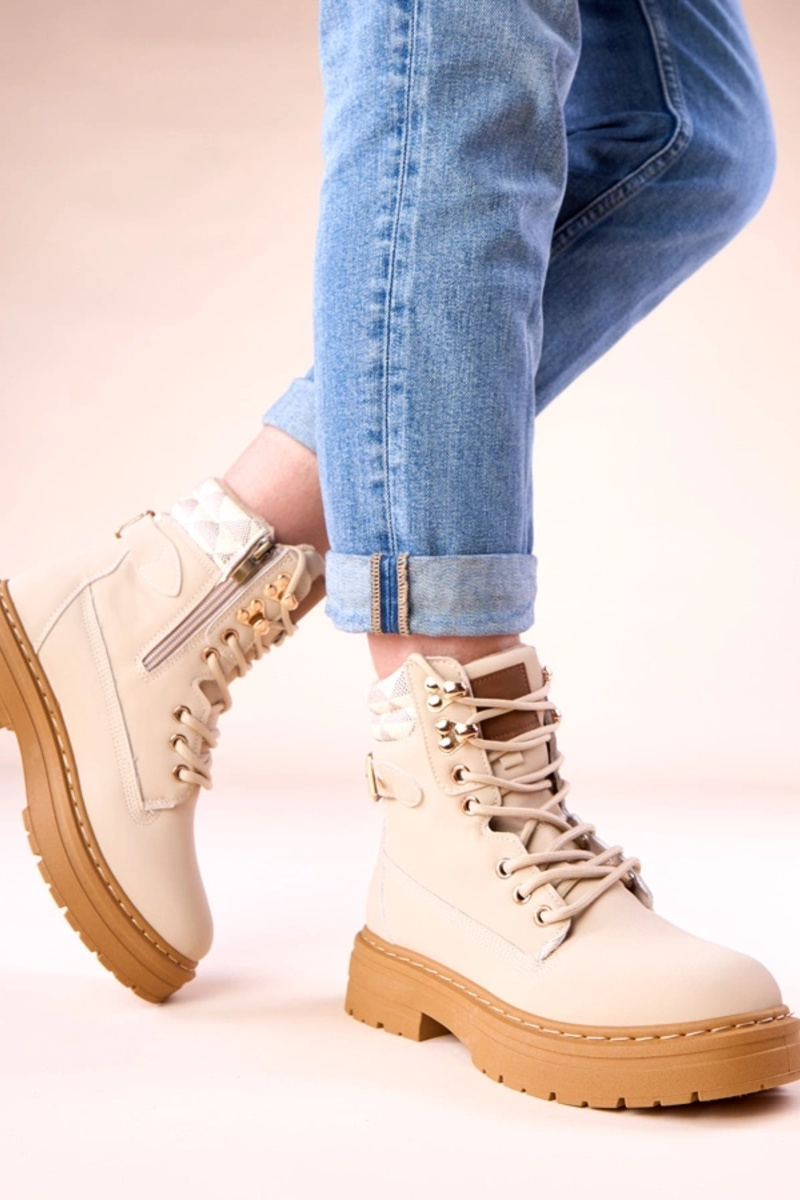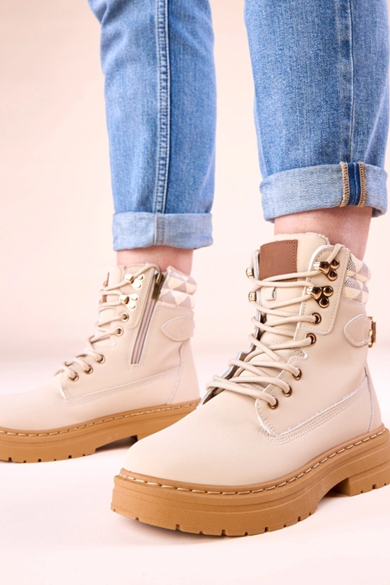 Smilšu krāsas siltie zābaki no matēta mākslīgā ādas Selio