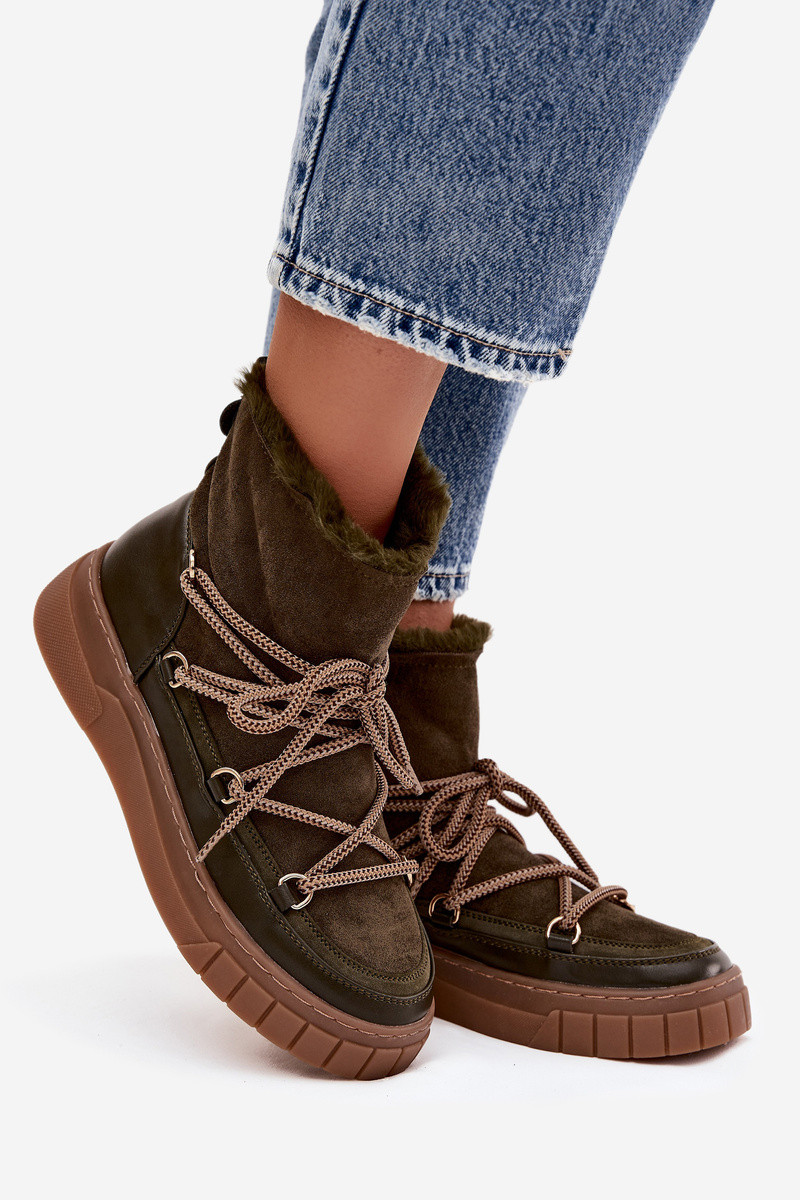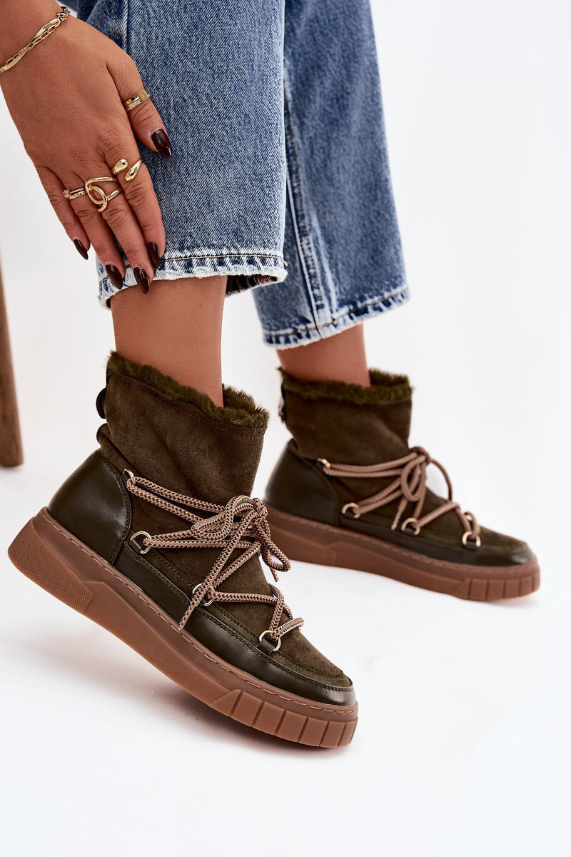 sniega apavi Sieviešu ar stilīgām detaļām haki krāsas Isalisse