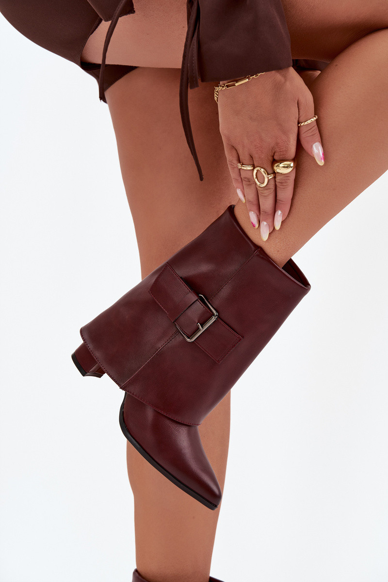 siltināti Sieviešu puszābaki ar papēdiINyIniniętą CholeInką I ar sprādzēm bordo krāsas Ylenara