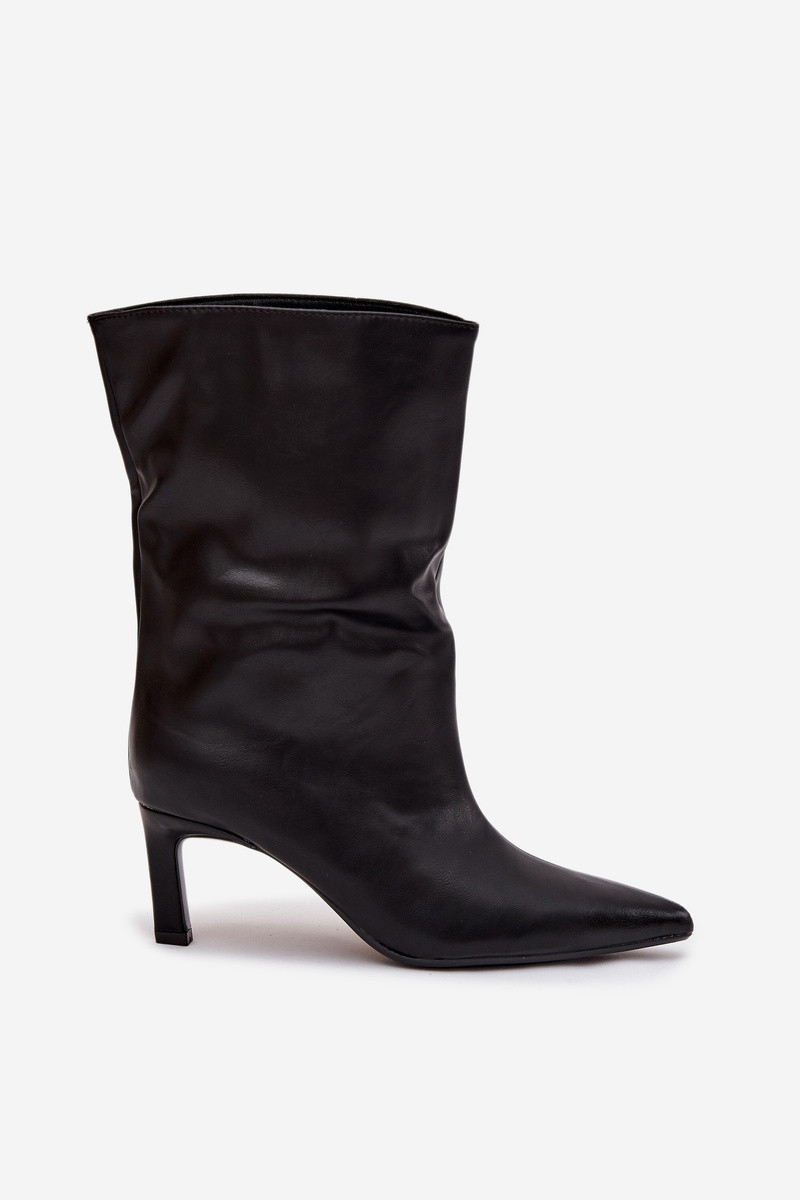 Ievelkami sieviešu zābaki ar plāniem papēžiem no mākslīgās ādas, melnā krāsā Norell