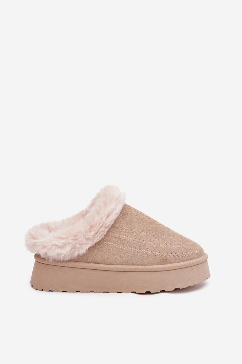 Sieviešu ziloņu kaula krāsas sniega zābaki ar platformu, kažokādu un šuvēm Arelina